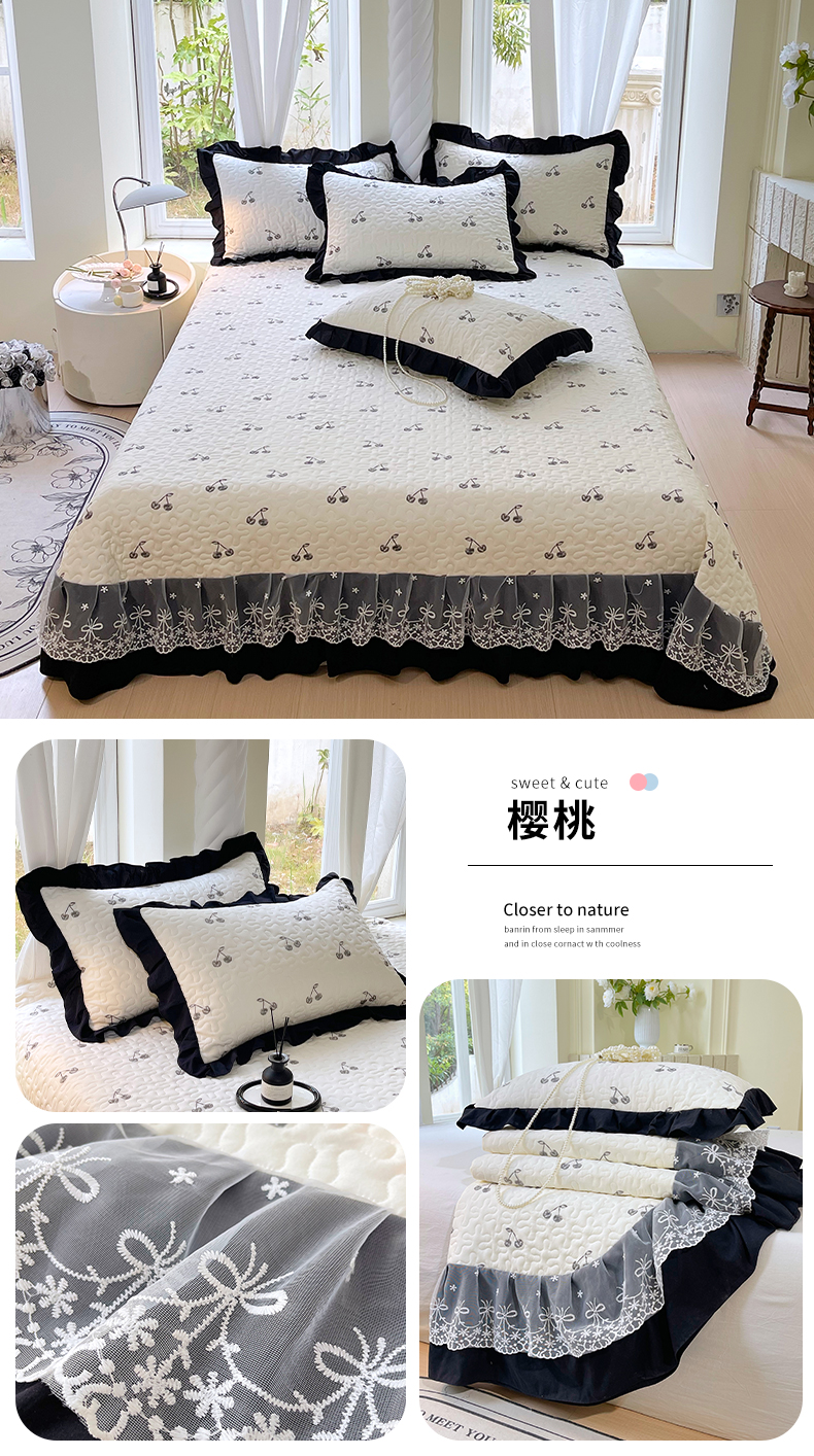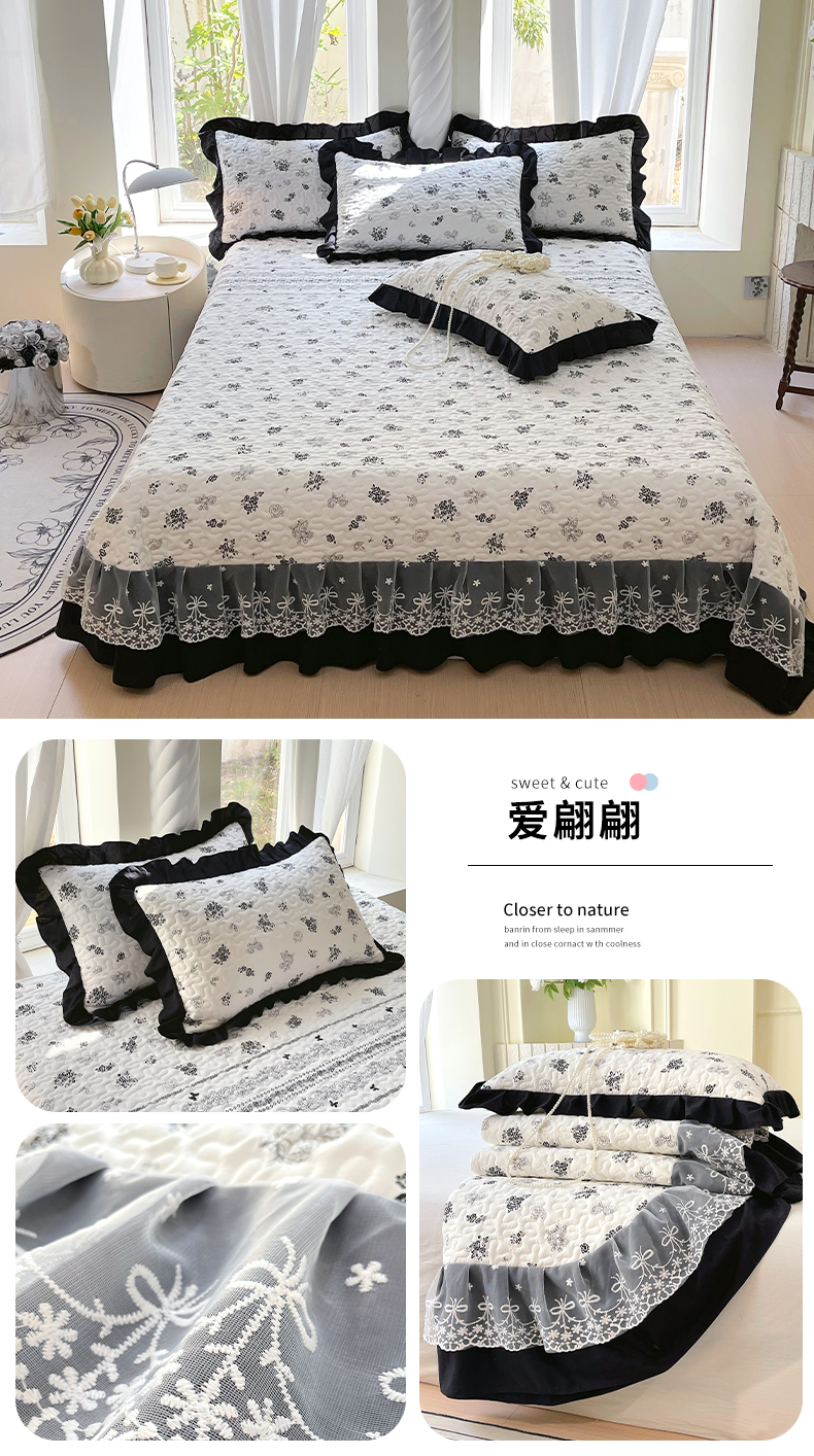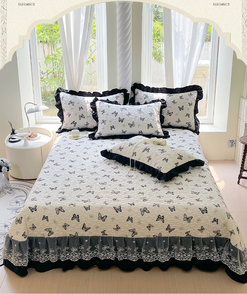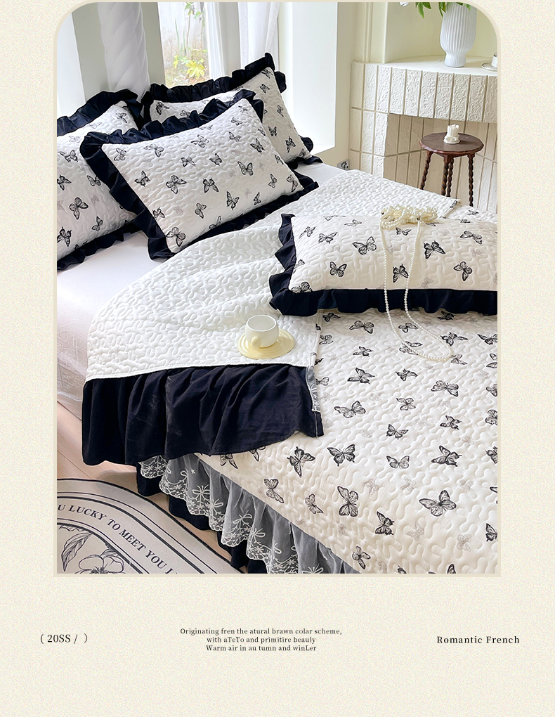 雨彤家纺 2025年新款赫本风云朵水洗棉夹棉双层花边床盖 蝴蝶-赫本风