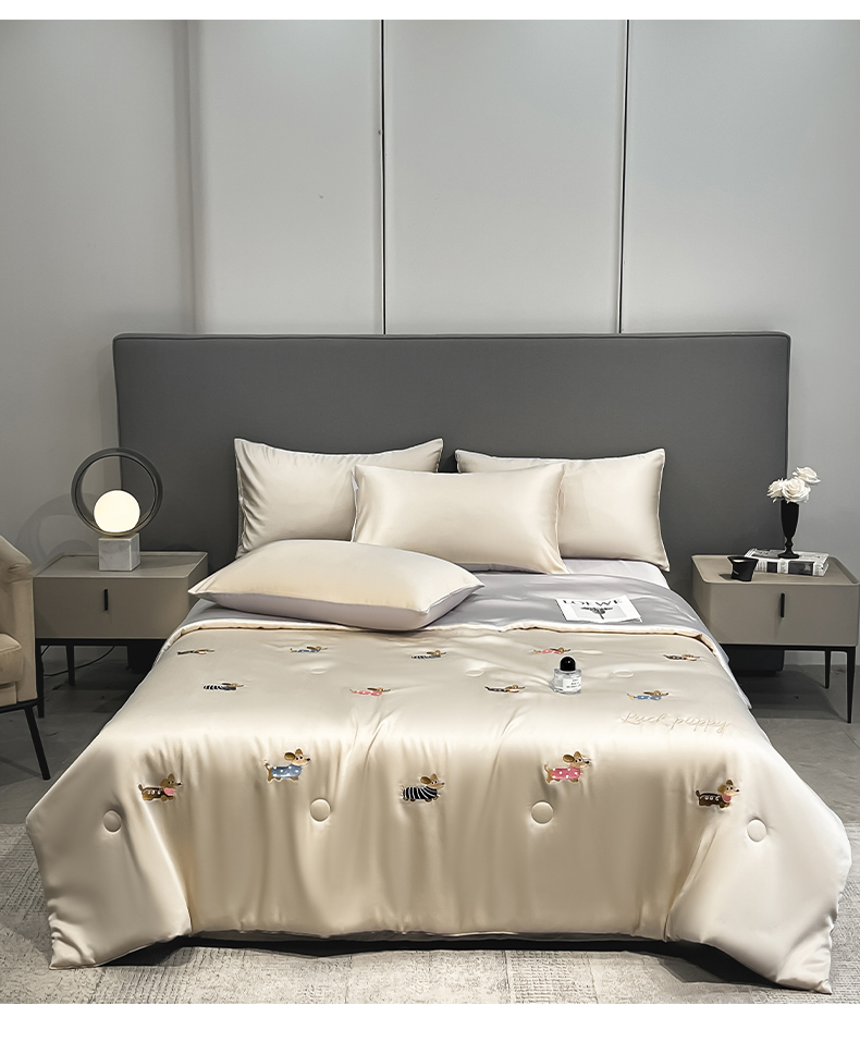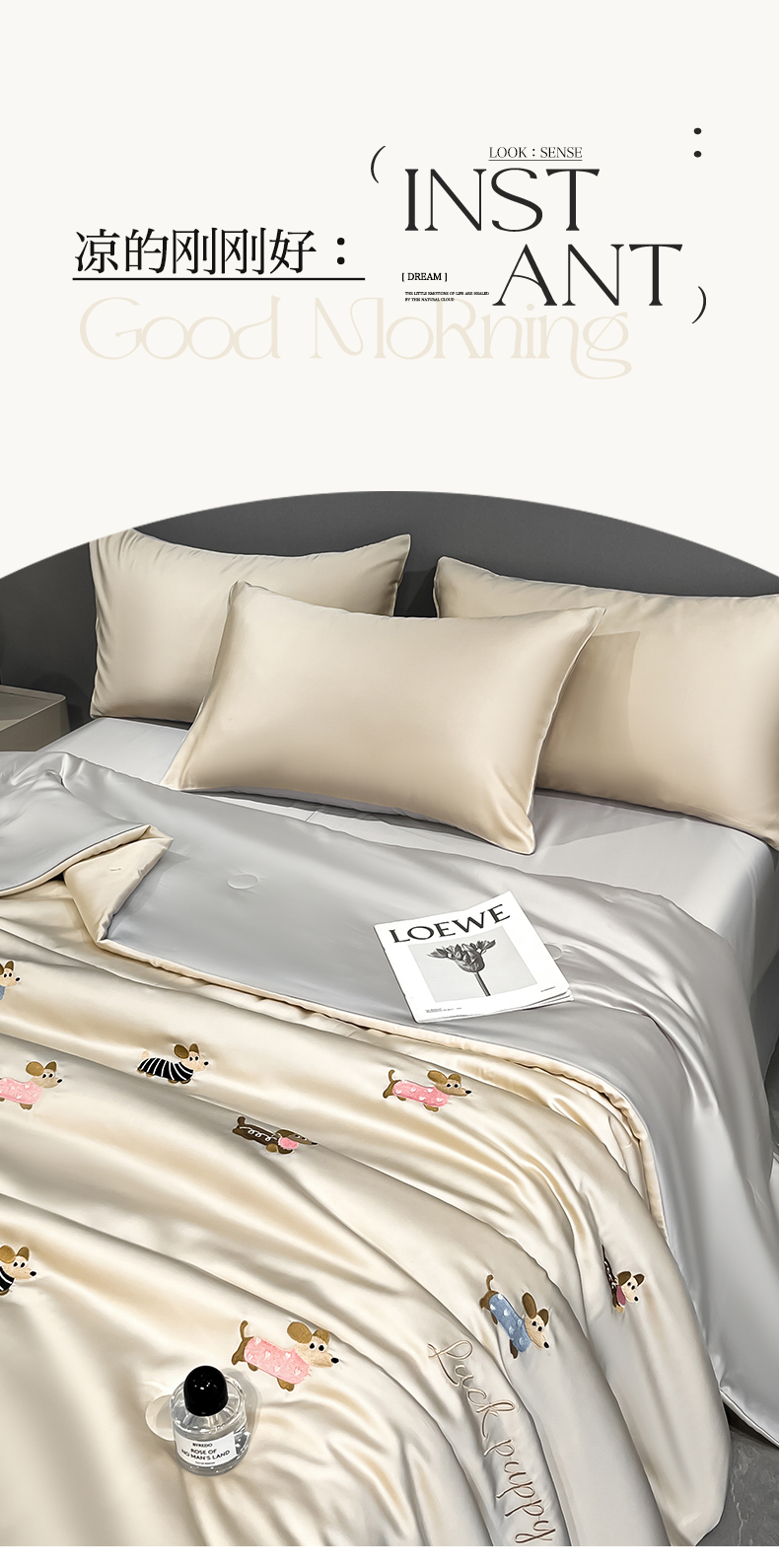 当前位置: 91家纺网 > 商品网购 > 床品套件 > 四件套 > 夏被四件套 > 如一 2025新款精绣系列水洗冰丝夏被四件套 腊肠狗-香槟灰