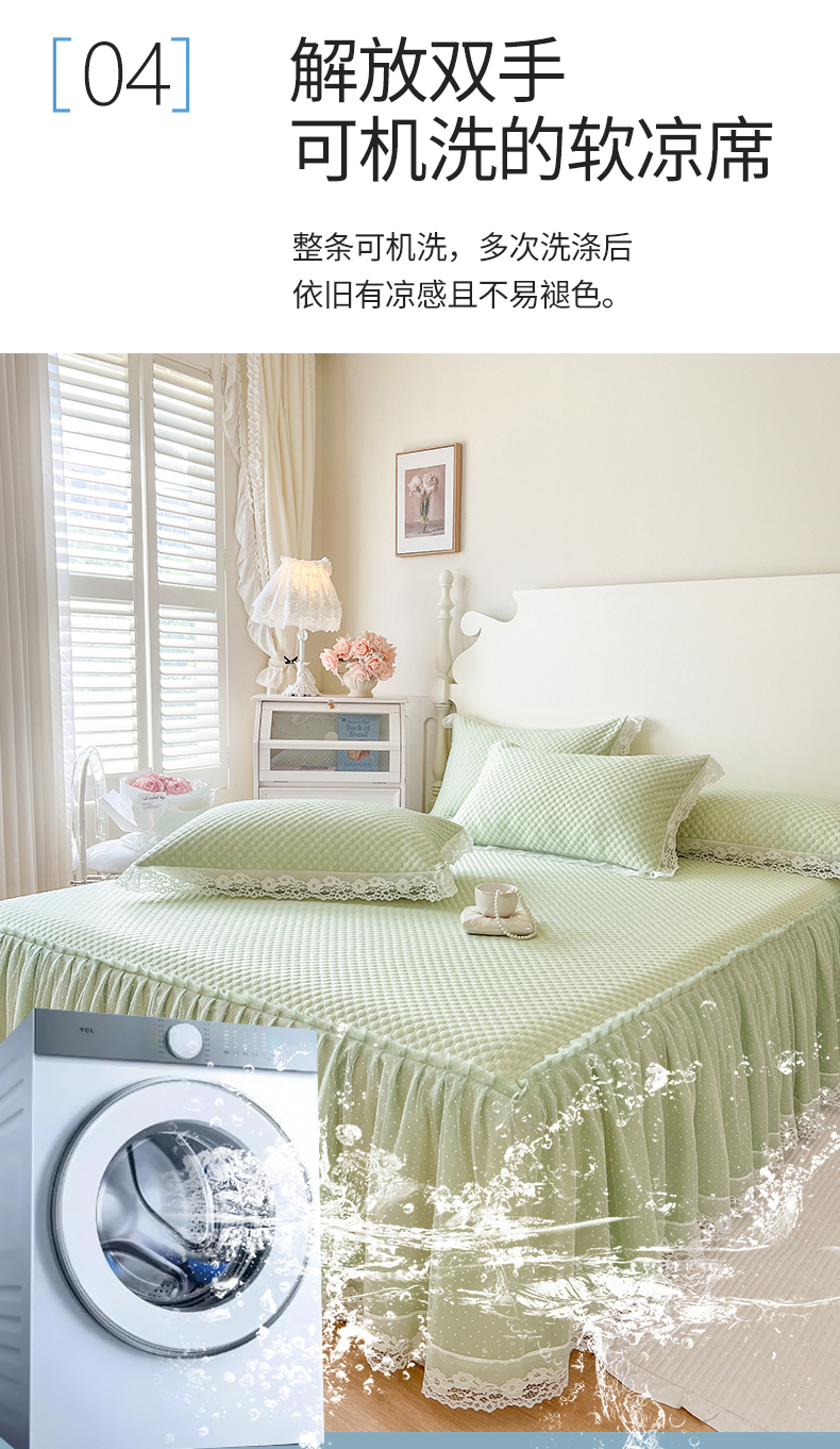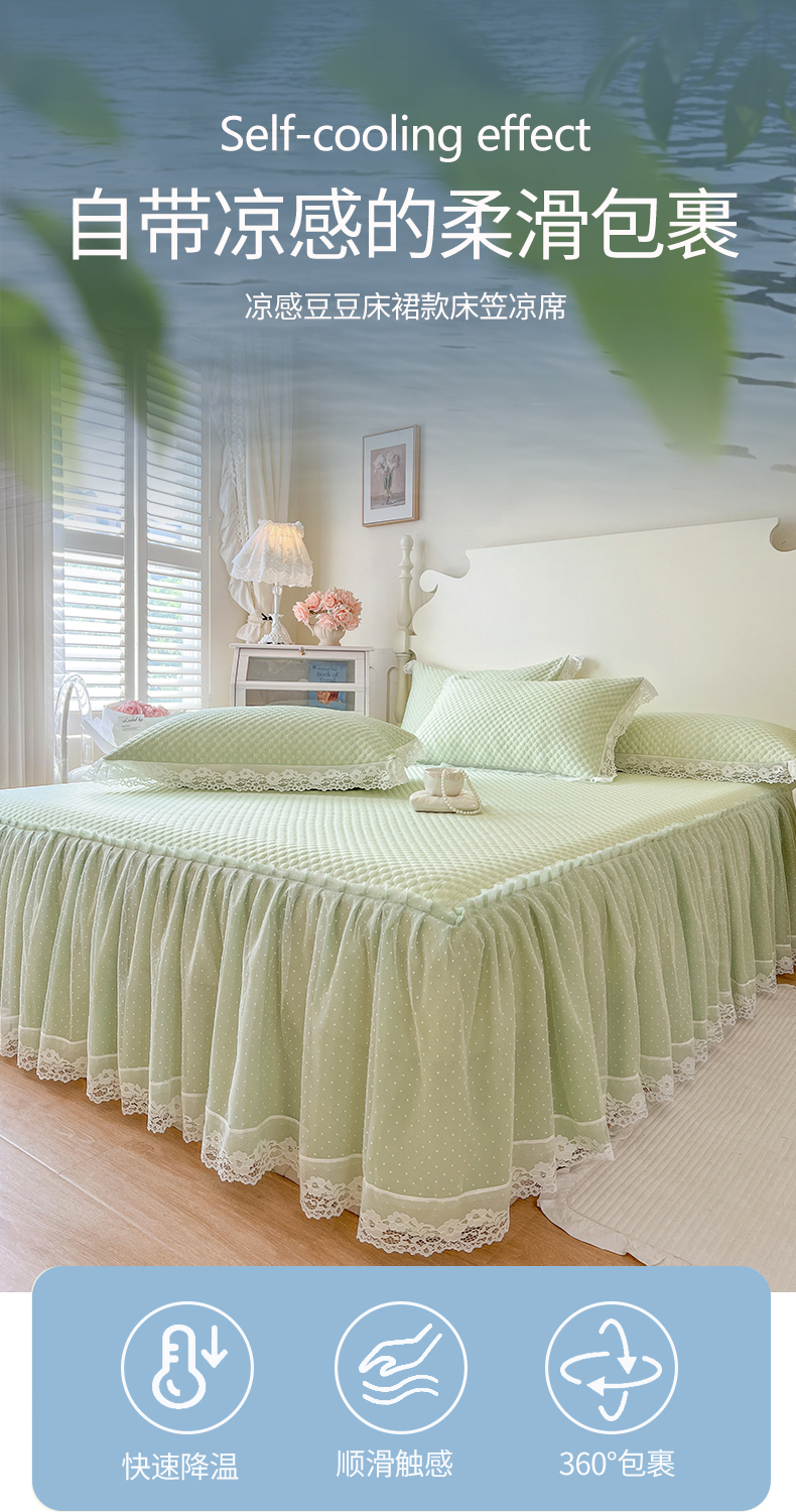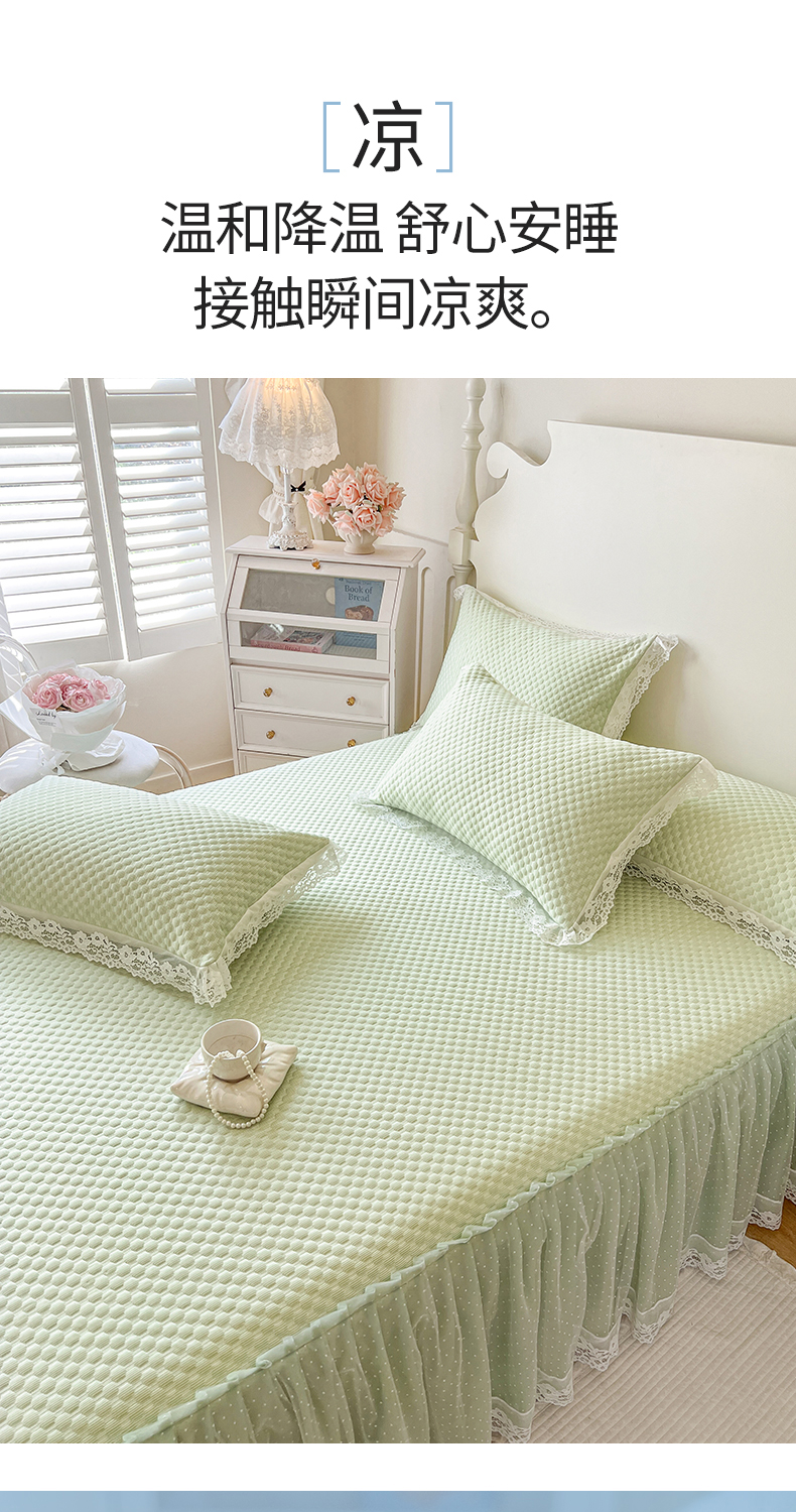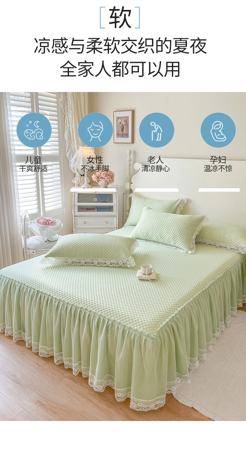 商品名称:网红馆(ck家纺) 2025新款床笠式床裙豆豆凉席--简单爱 水绿