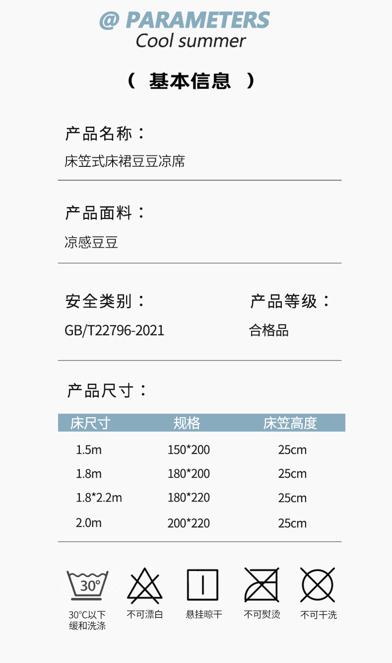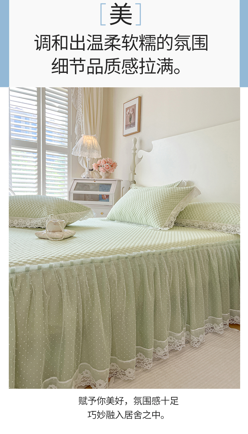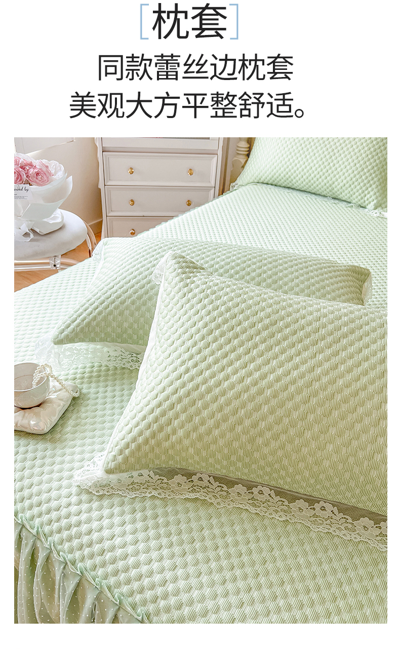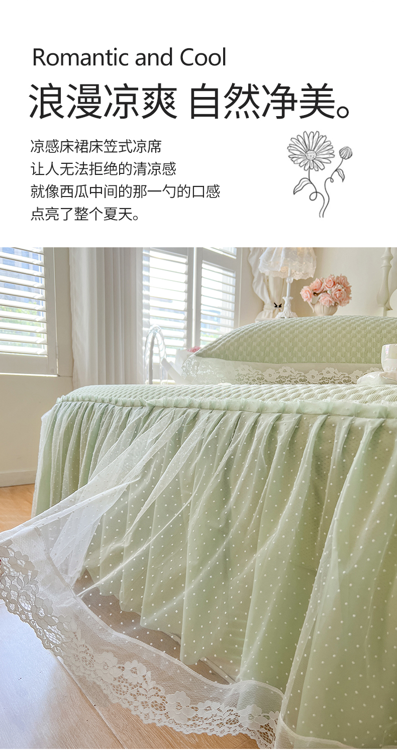 商品名称:网红馆(ck家纺) 2025新款床笠式床裙豆豆凉席--简单爱 水绿
