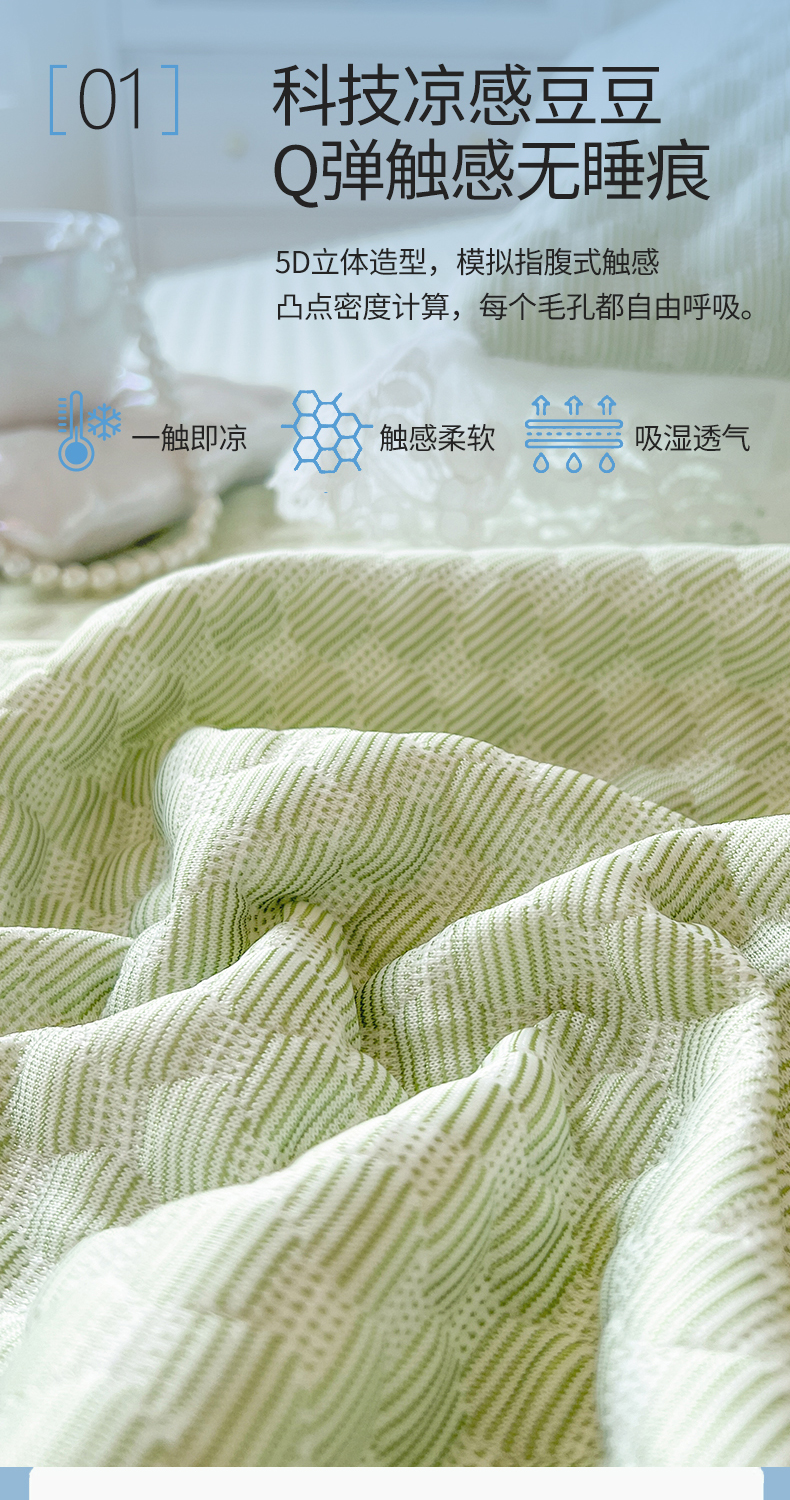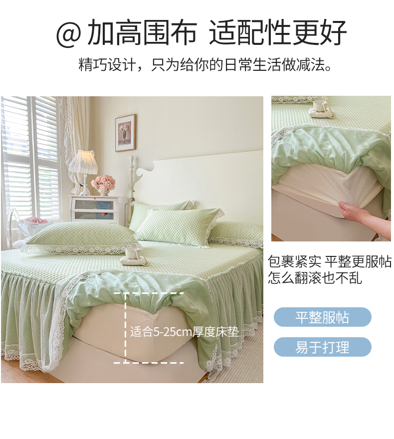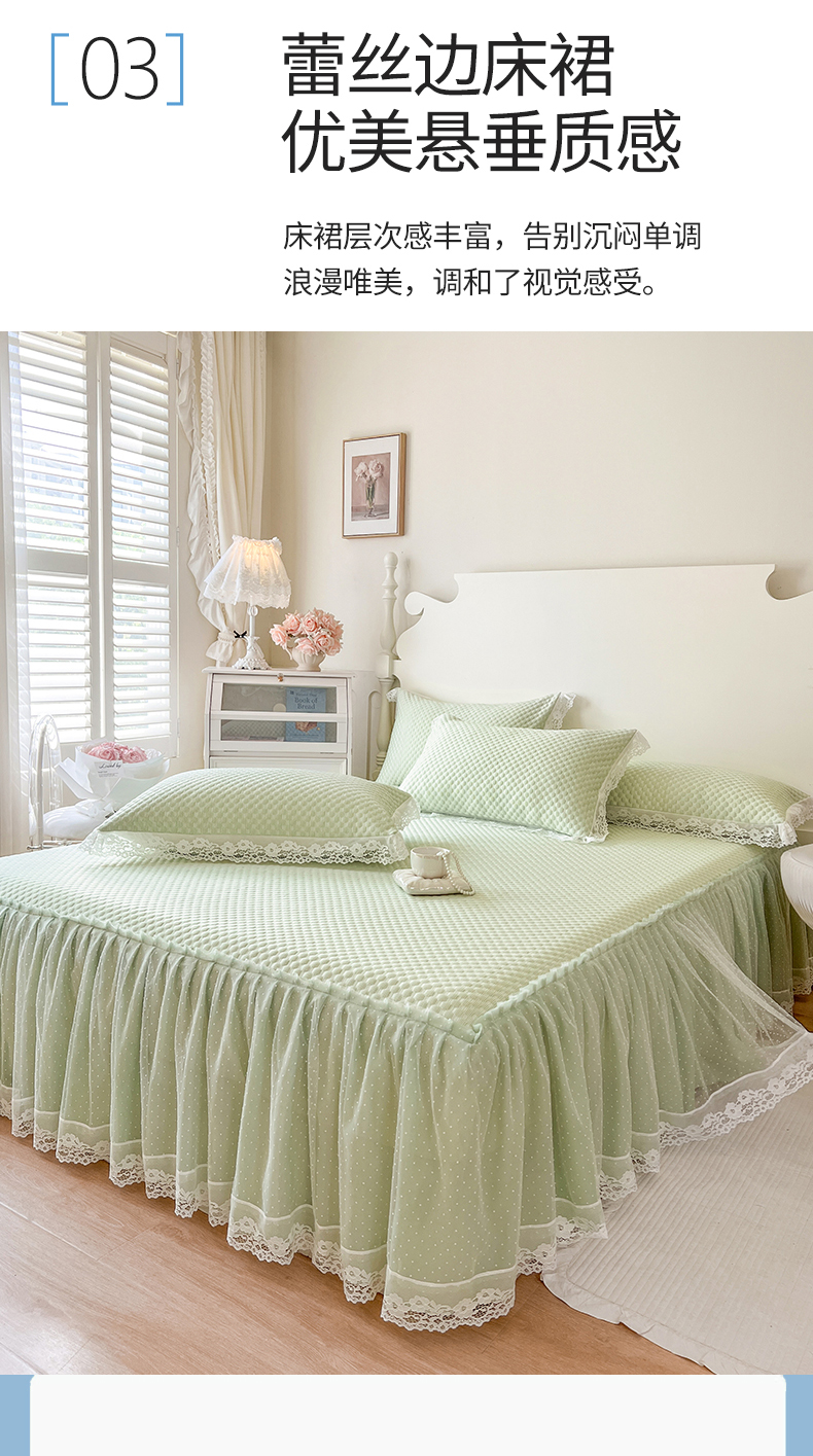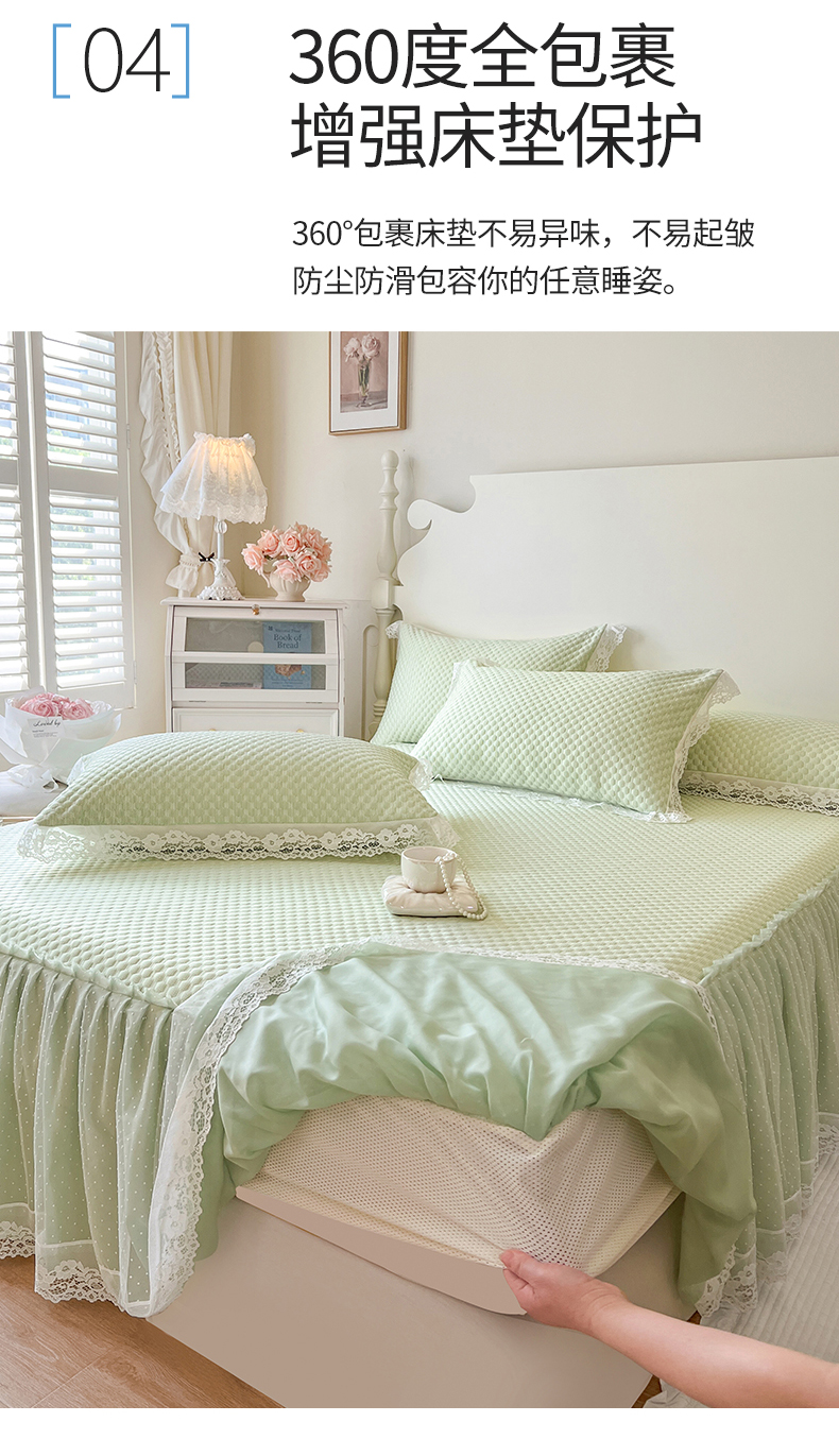 商品名称:网红馆(ck家纺) 2025新款床笠式床裙豆豆凉席--简单爱 水绿