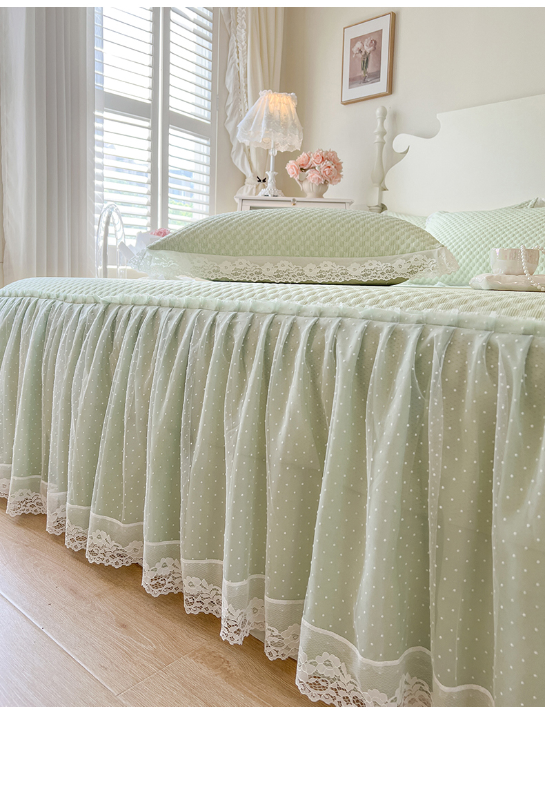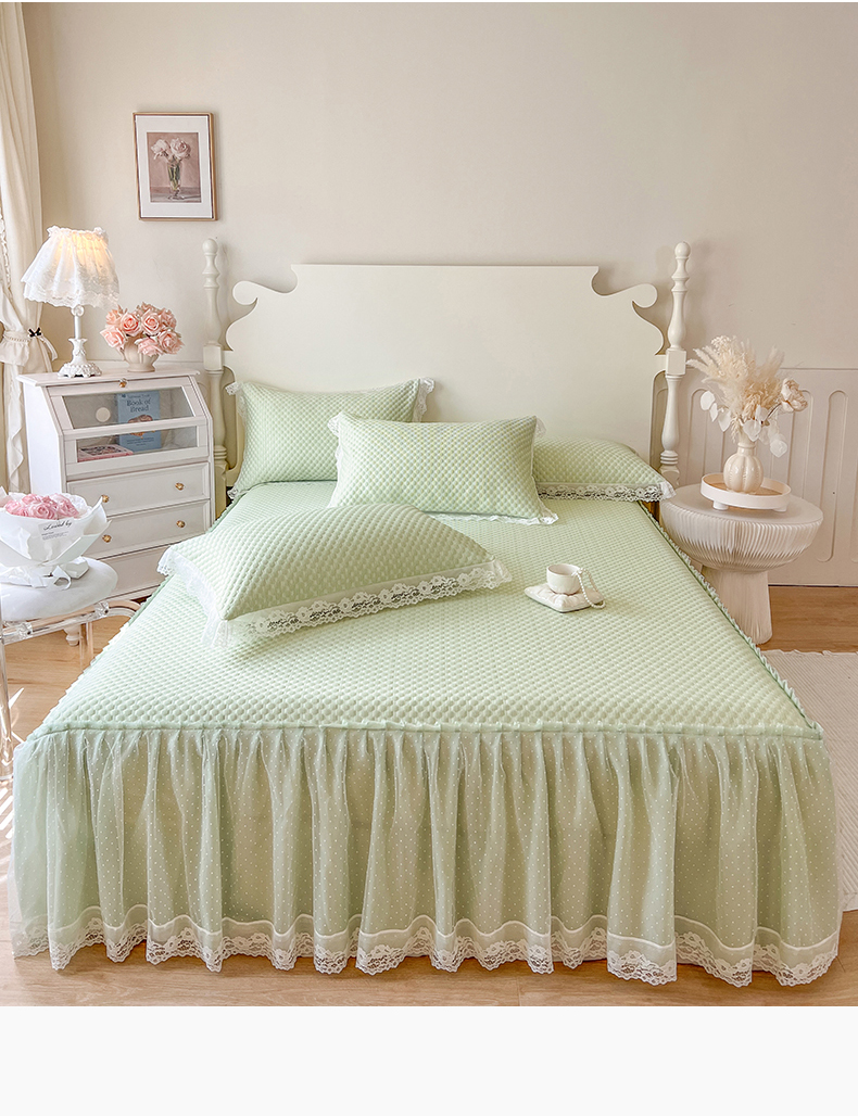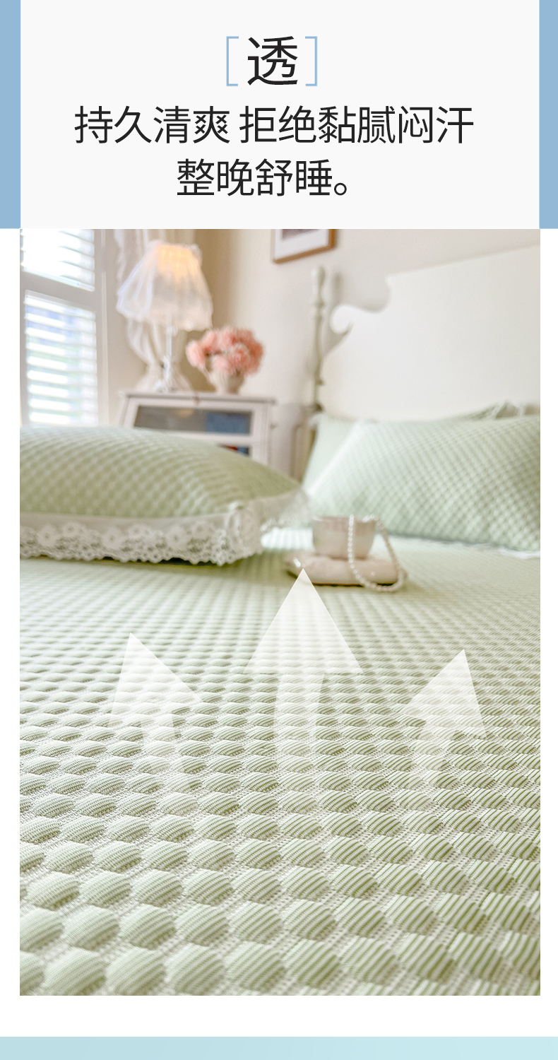 网红馆(ck家纺) 2025新款床笠式床裙豆豆凉席--简单爱 水绿