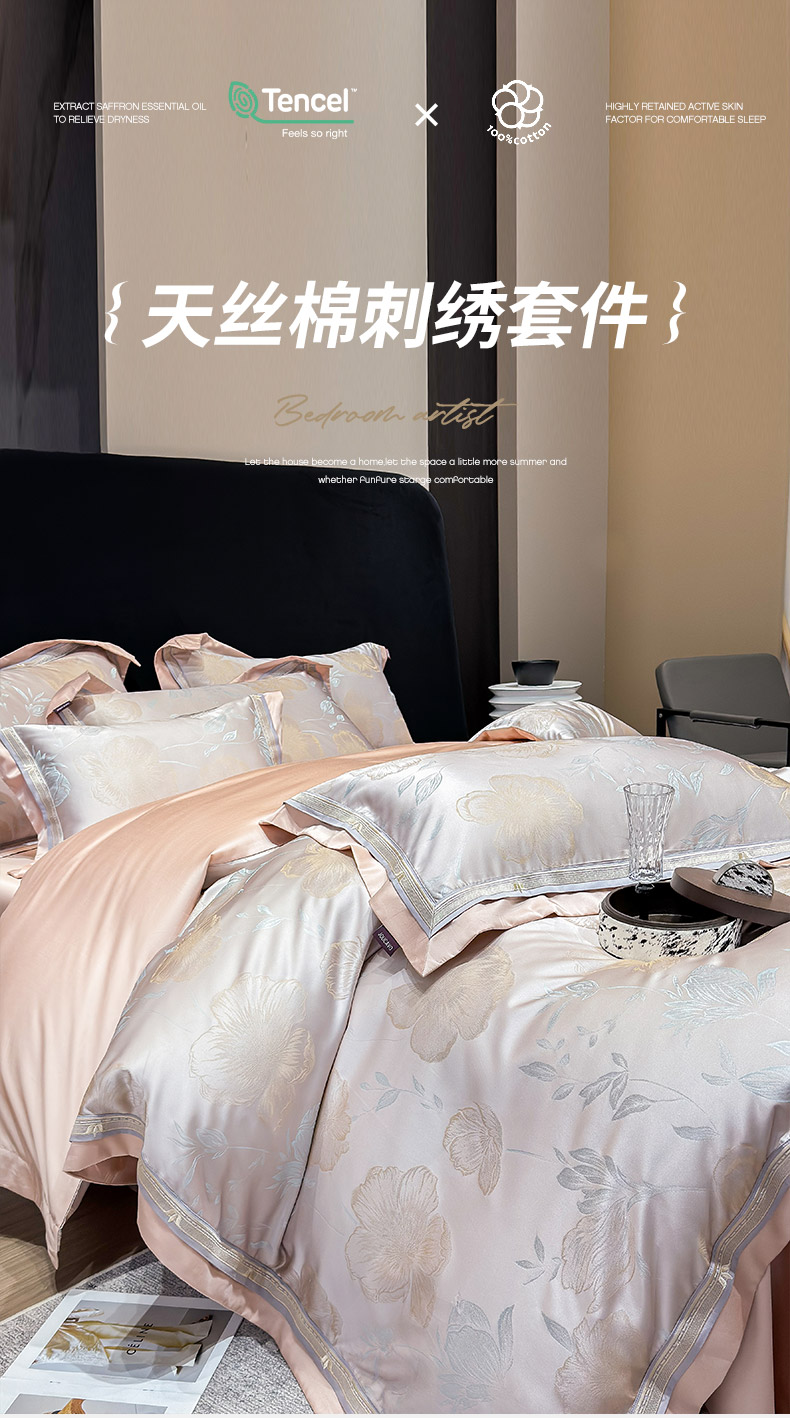 (总) 2025新款轻奢A类天丝棉提花四件套真丝贡缎全工艺丝滑裸睡夏季爆款床上用品-茉影