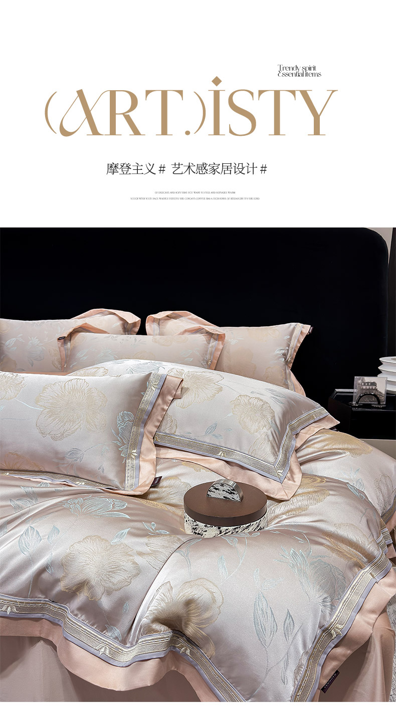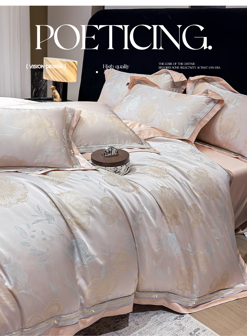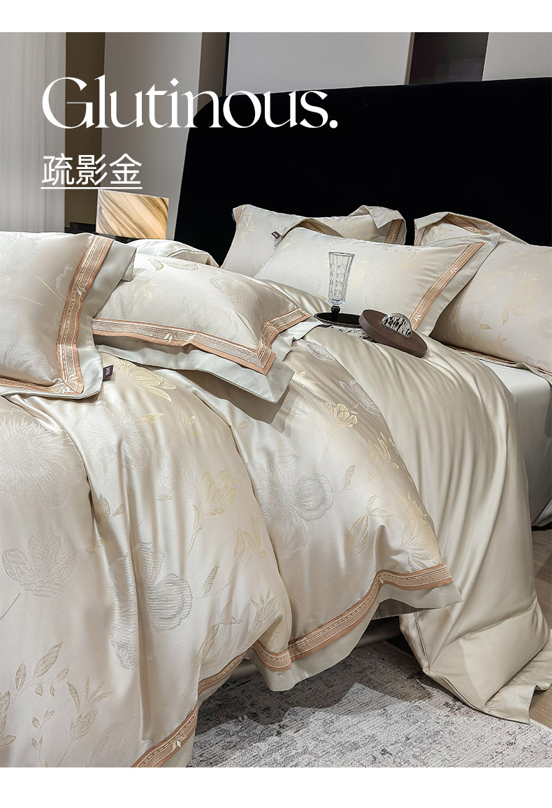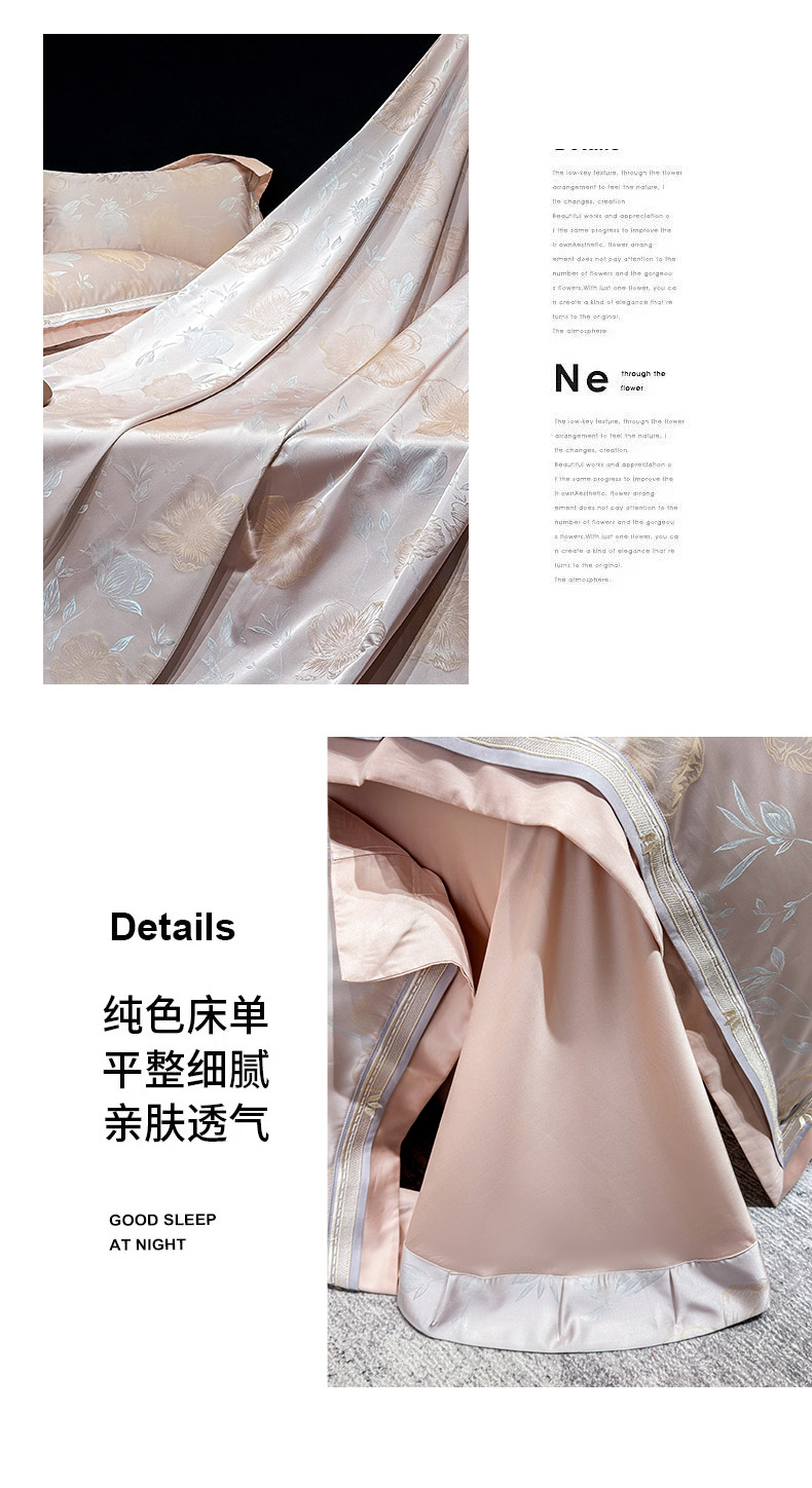 商品名称:(总) 2025新款轻奢A类天丝棉提花四件套真丝贡缎全工艺丝滑裸睡夏季爆款床上用品-茉影