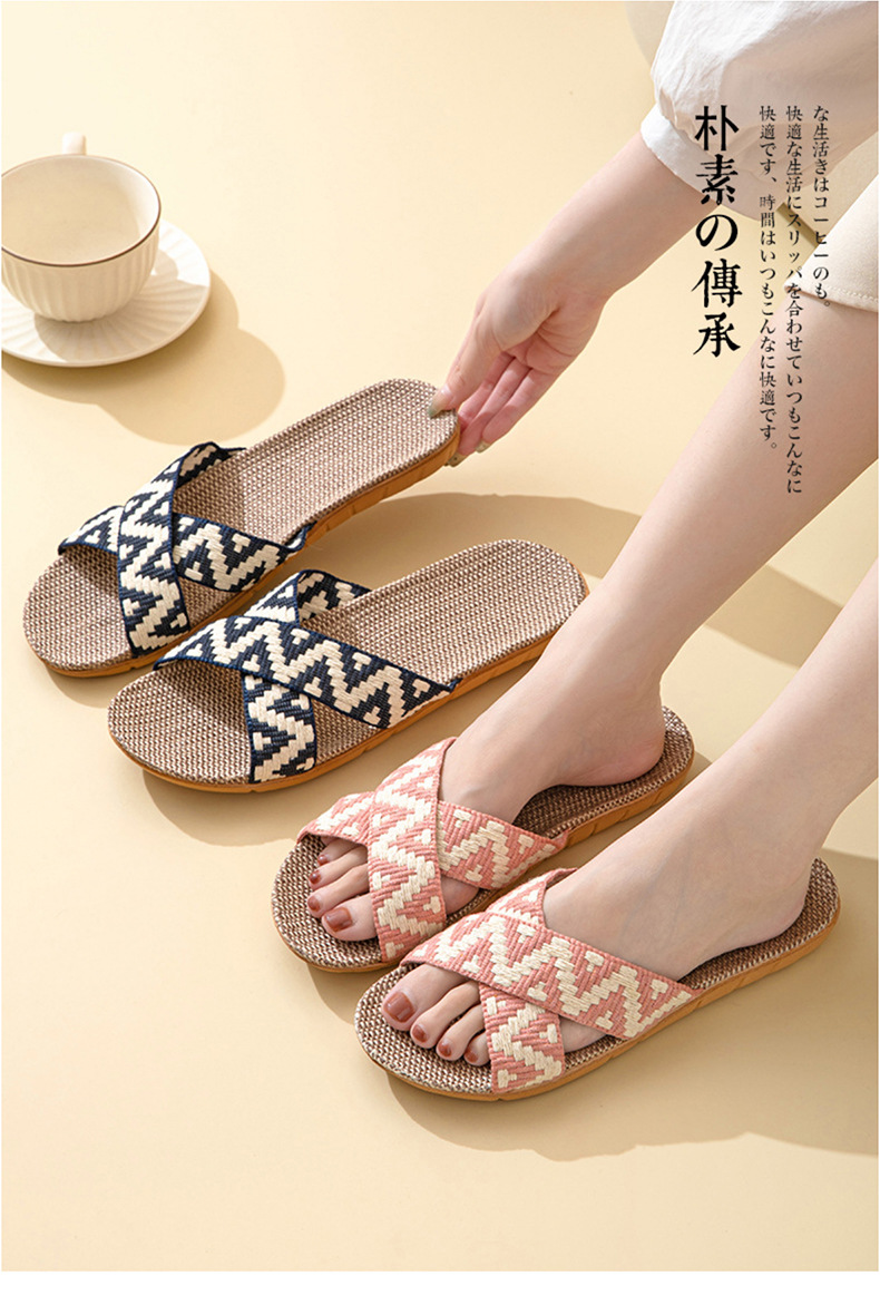 良品汇馆 2025新款日式无印家居情侣室内拖鞋良品木地板亚麻拖鞋居家防滑男女夏季凉 交叉拖鞋-黑色男