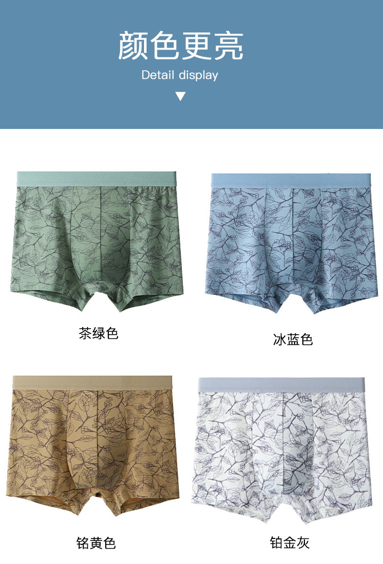 商品名称:良品汇馆 2025新款日式无印全棉纯棉印花男士内裤良品棉质透气男生运动休闲平角四角短裤 茶绿色