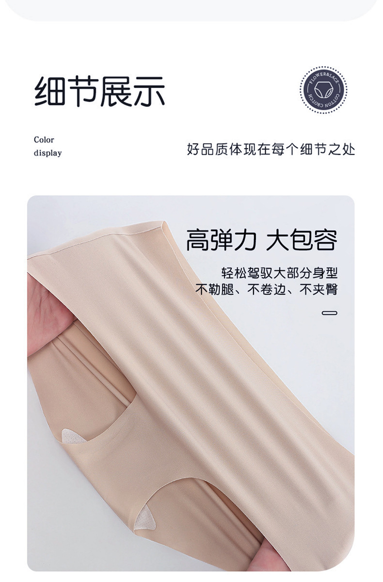 商品名称:良品汇馆 2025新款日式无印女生一片式中腰内裤良品纯色三角内裤蚕丝裆无痕冰丝锦氨 深肤