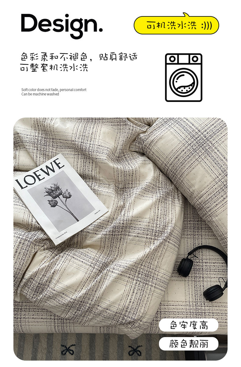 当前位置: 91家纺网 > 商品网购 > 床品套件 > 四件套 > 全棉普通四件套 > 耀悦家纺 2025新款简约无印风条纹格子纯棉四件套被套床单枕套床笠宿舍学生套件 心语格调