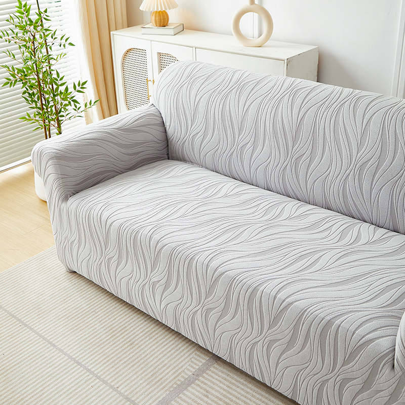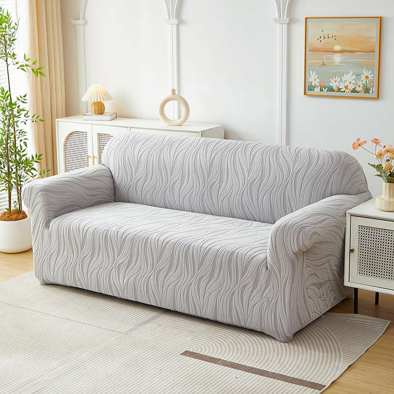 商品名称:共鸣沙发套 2025春夏新款水波纹弹力提花全包万能沙发套单沙发套全包款 米黄色
