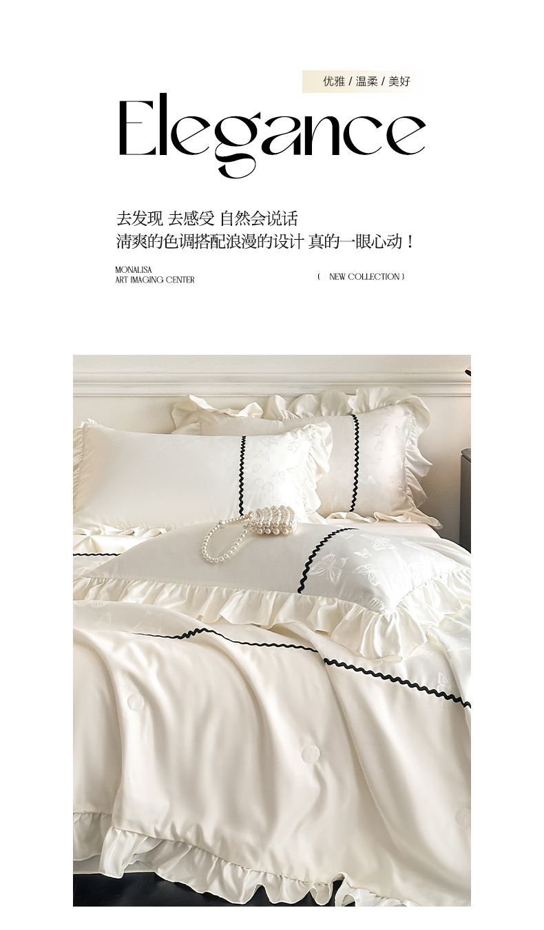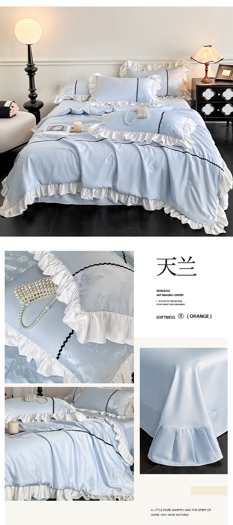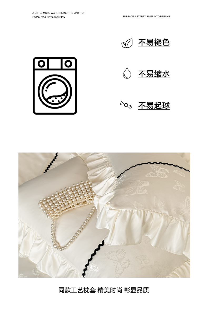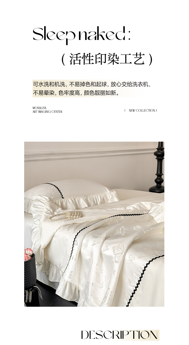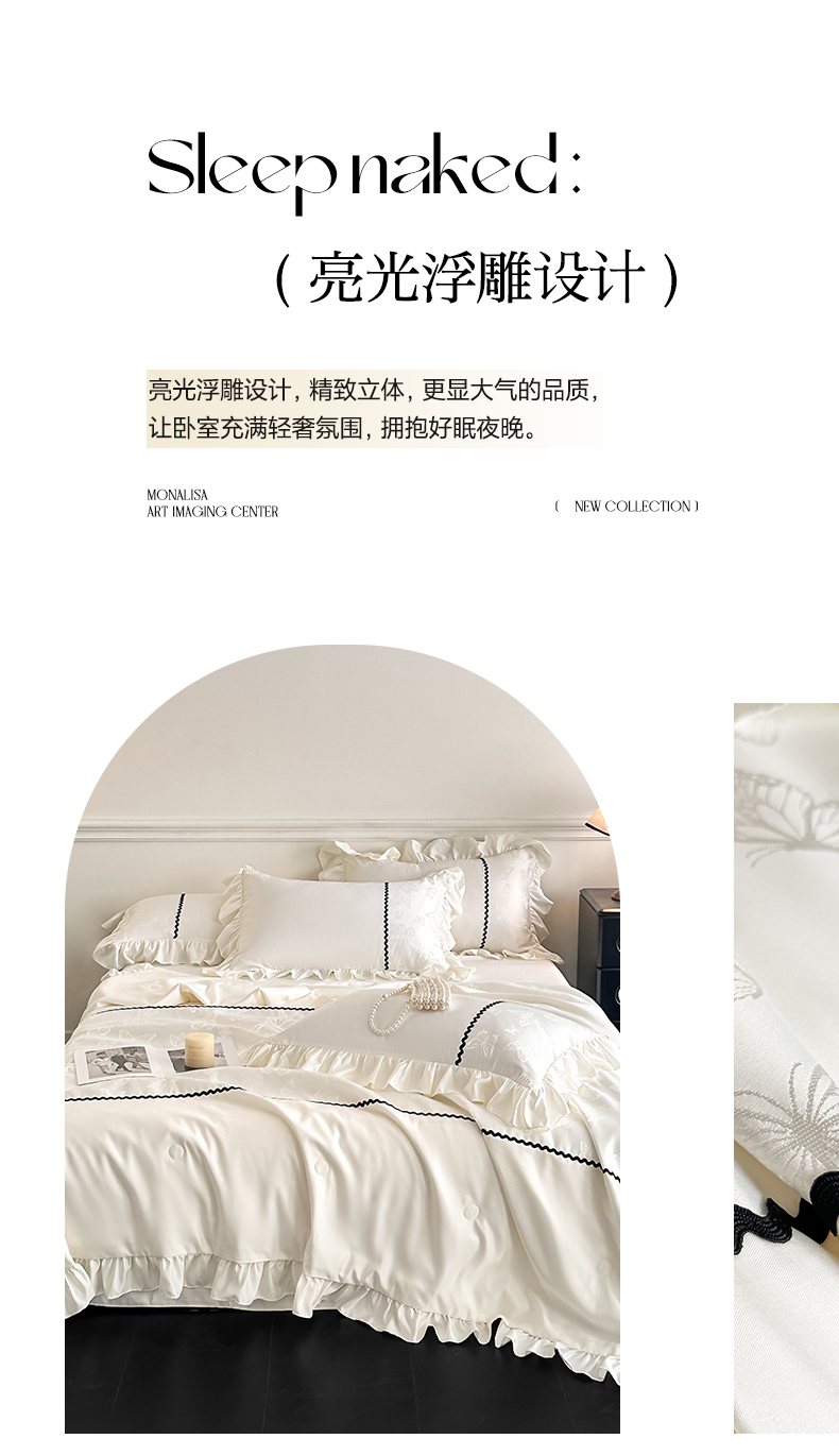 (总)米彩家纺 2025新款A类水洗真丝亮光浮雕花边四件套,粉香槟,粉玉,奶昔白,浅灰,天兰
