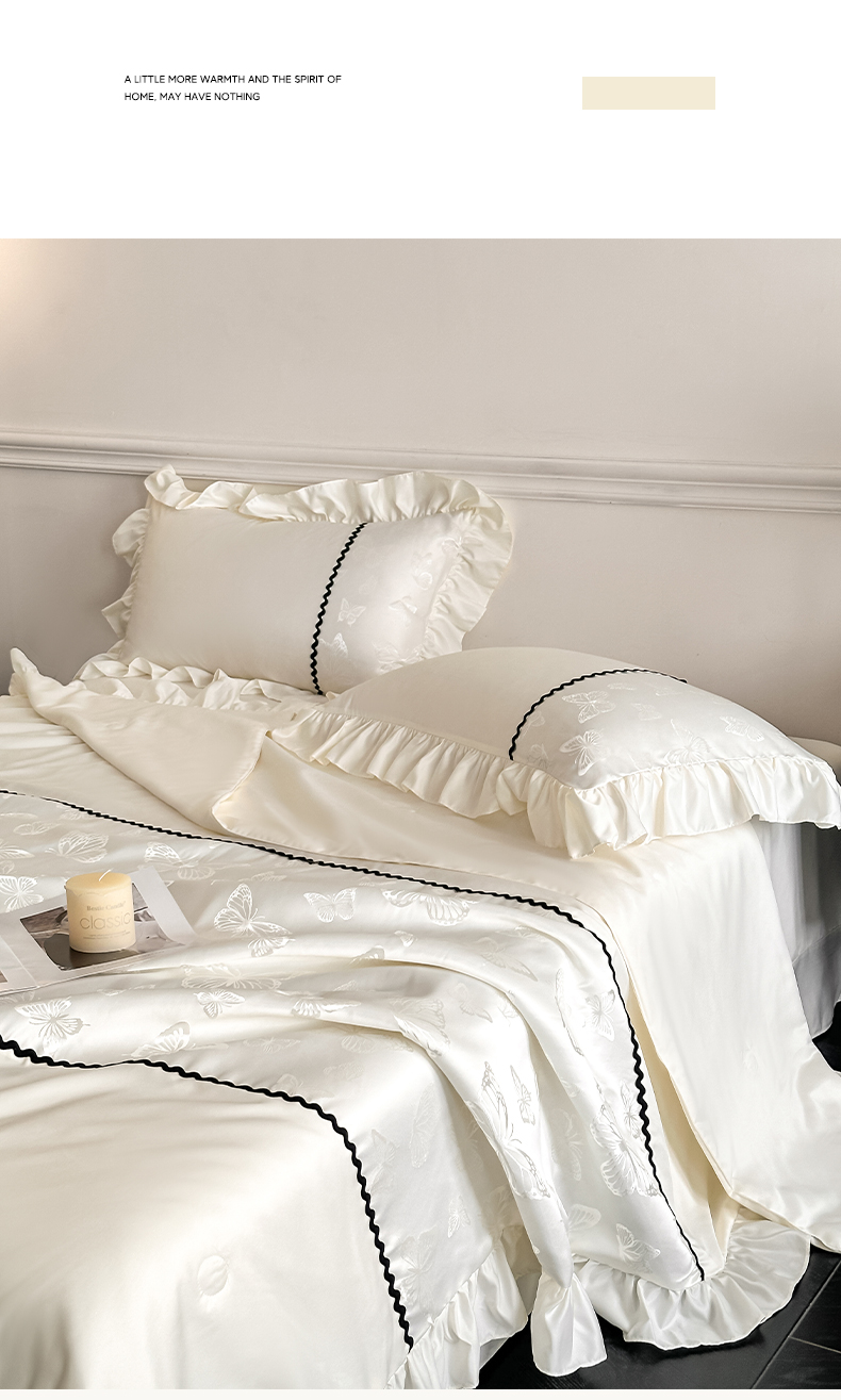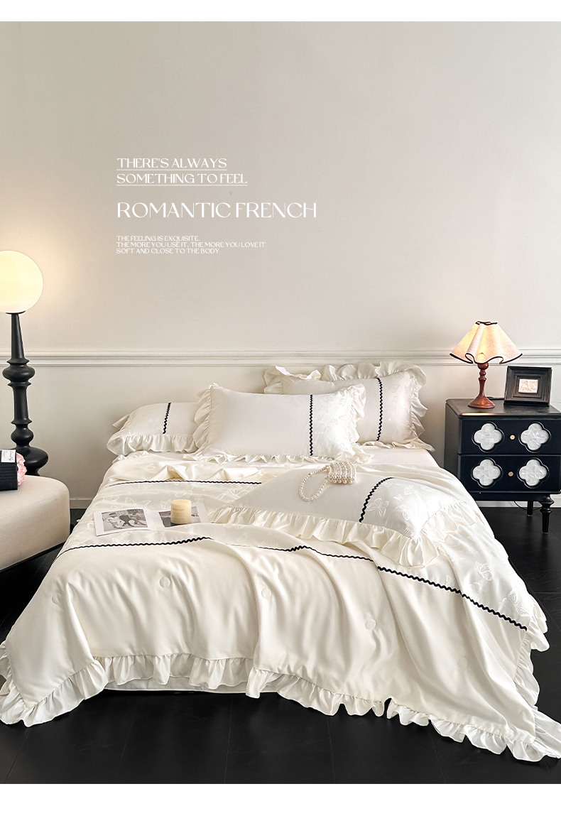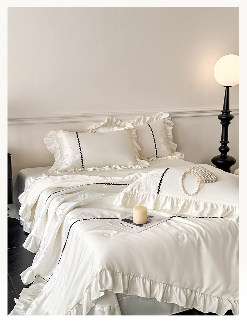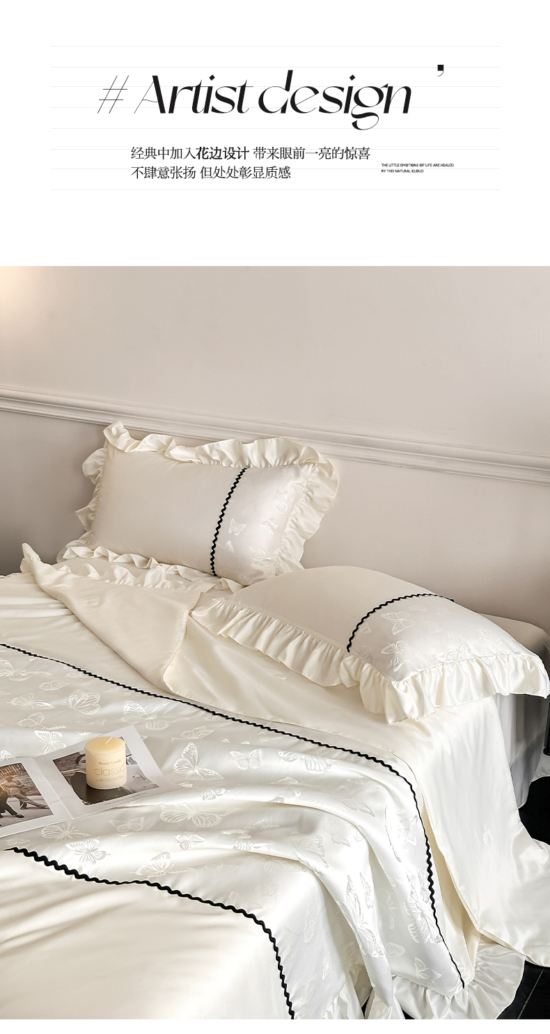 米彩家纺 2025新款A类水洗真丝亮光浮雕洛丽塔夏被夏凉被空调被四件套 奶昔白
