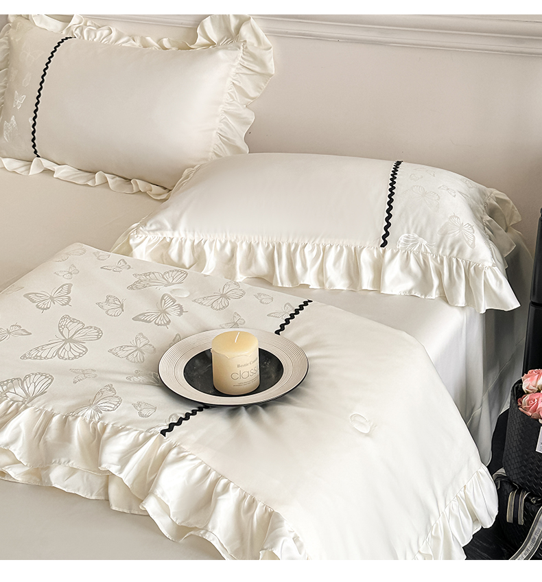 商品名称:米彩家纺 2025新款A类水洗真丝亮光浮雕洛丽塔夏被夏凉被空调被四件套 奶昔白