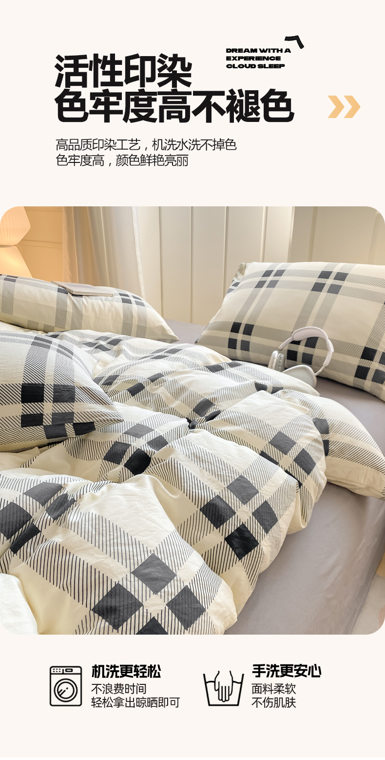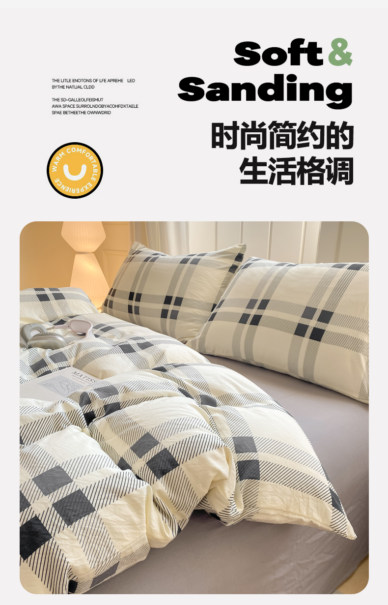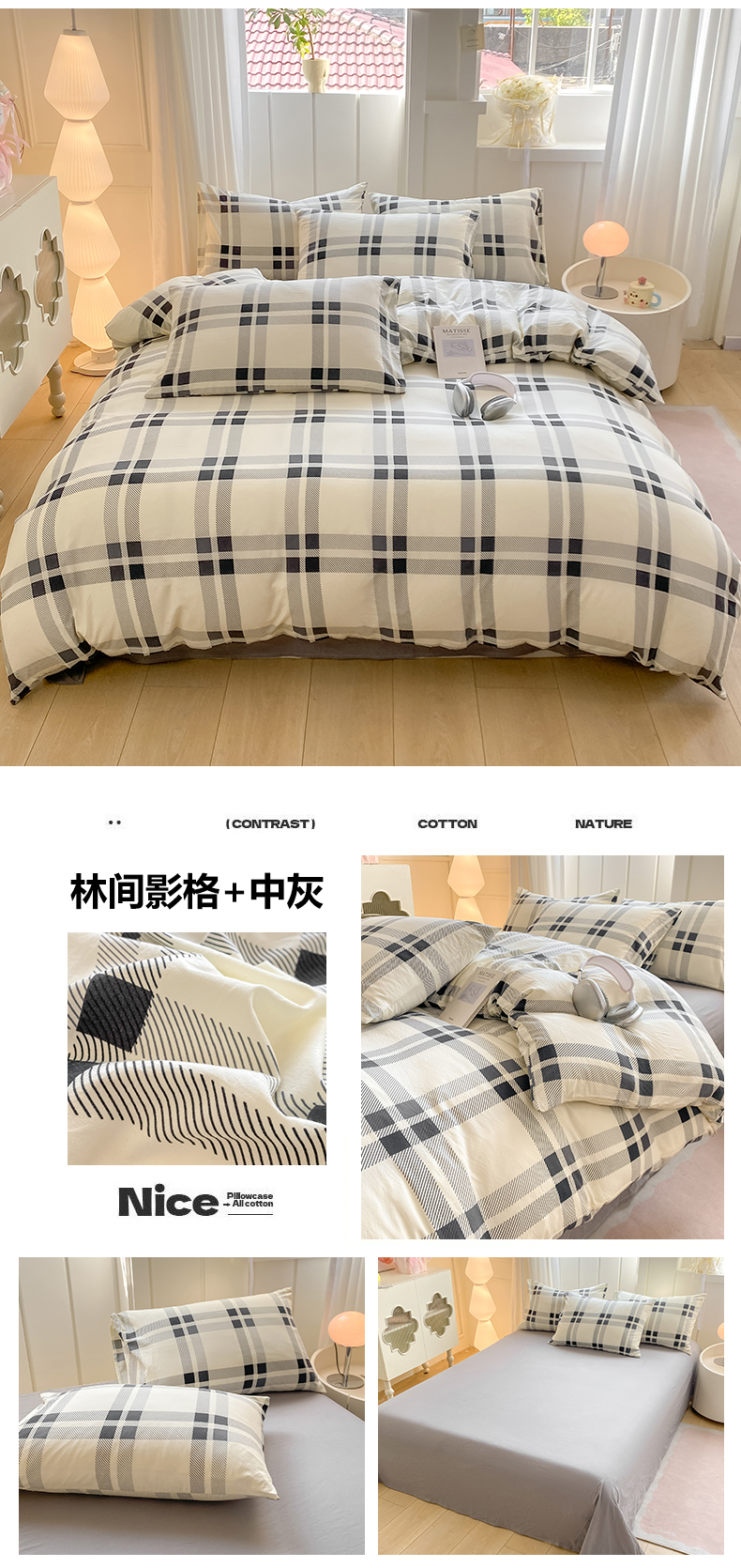 当前位置: 91家纺网 > 商品网购 > 床品套件 > 四件套 > 水洗棉四件套 > 慕木家纺 2025新品A类条纹简约无印风水洗棉床单款四件套条纹格系列(抽空压缩可跨境提供买家秀) 林间影格+中灰