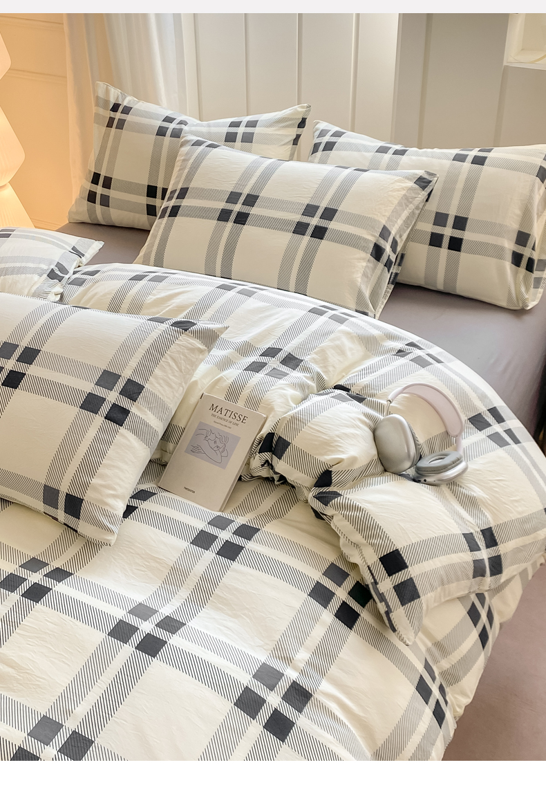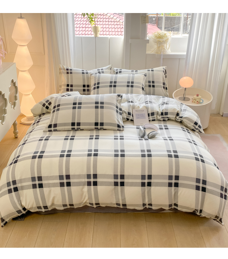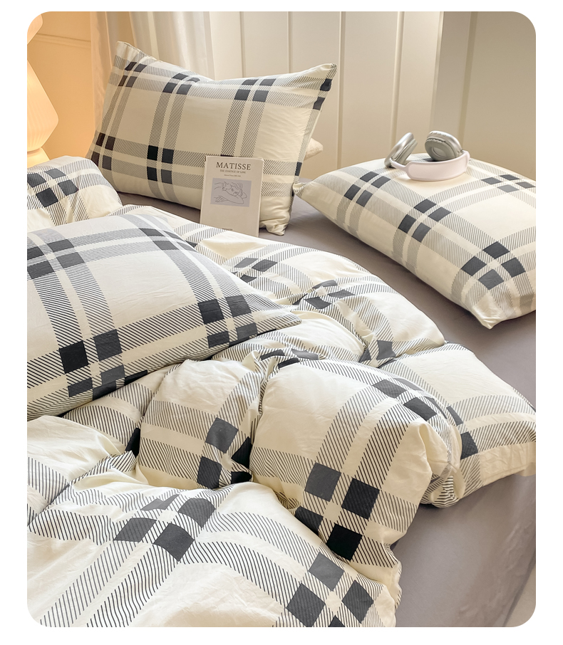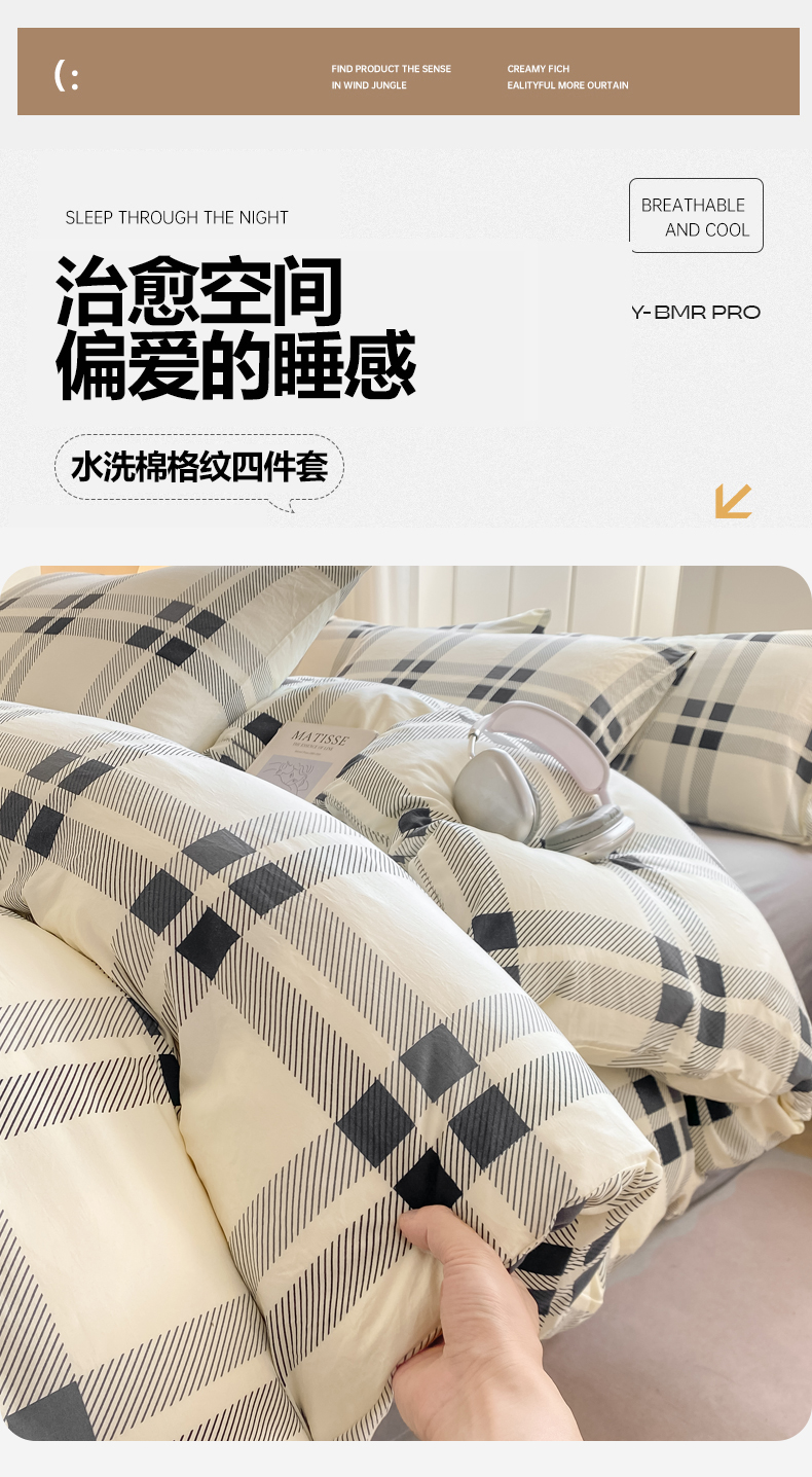当前位置: 91家纺网 > 商品网购 > 床品套件 > 四件套 > 水洗棉四件套 > 慕木家纺 2025新品A类条纹简约无印风水洗棉床单款四件套条纹格系列(抽空压缩可跨境提供买家秀) 林间影格+中灰