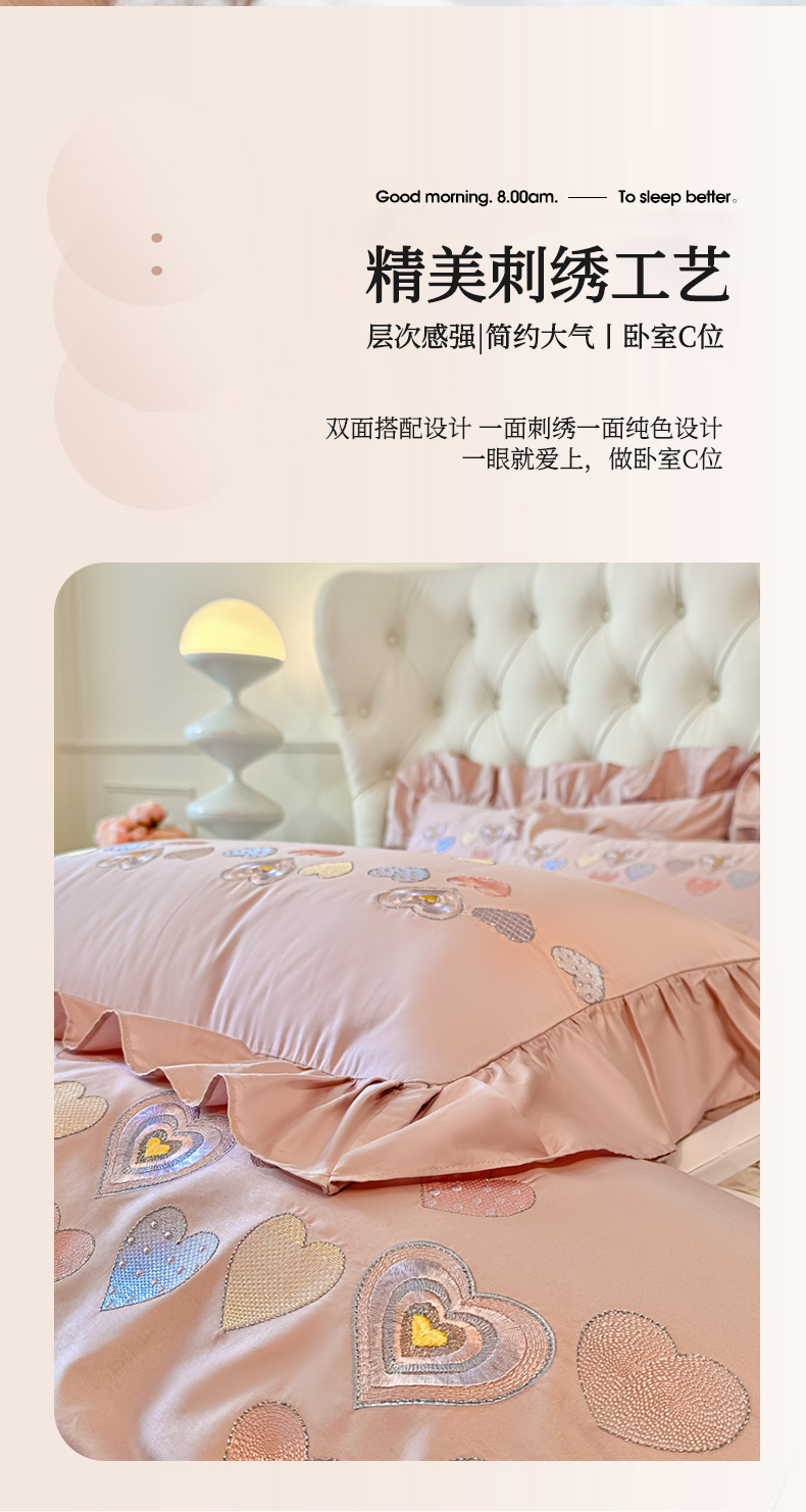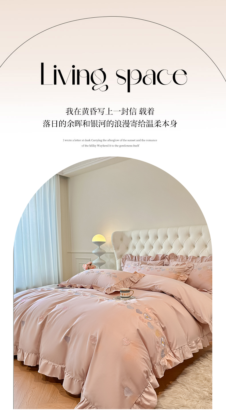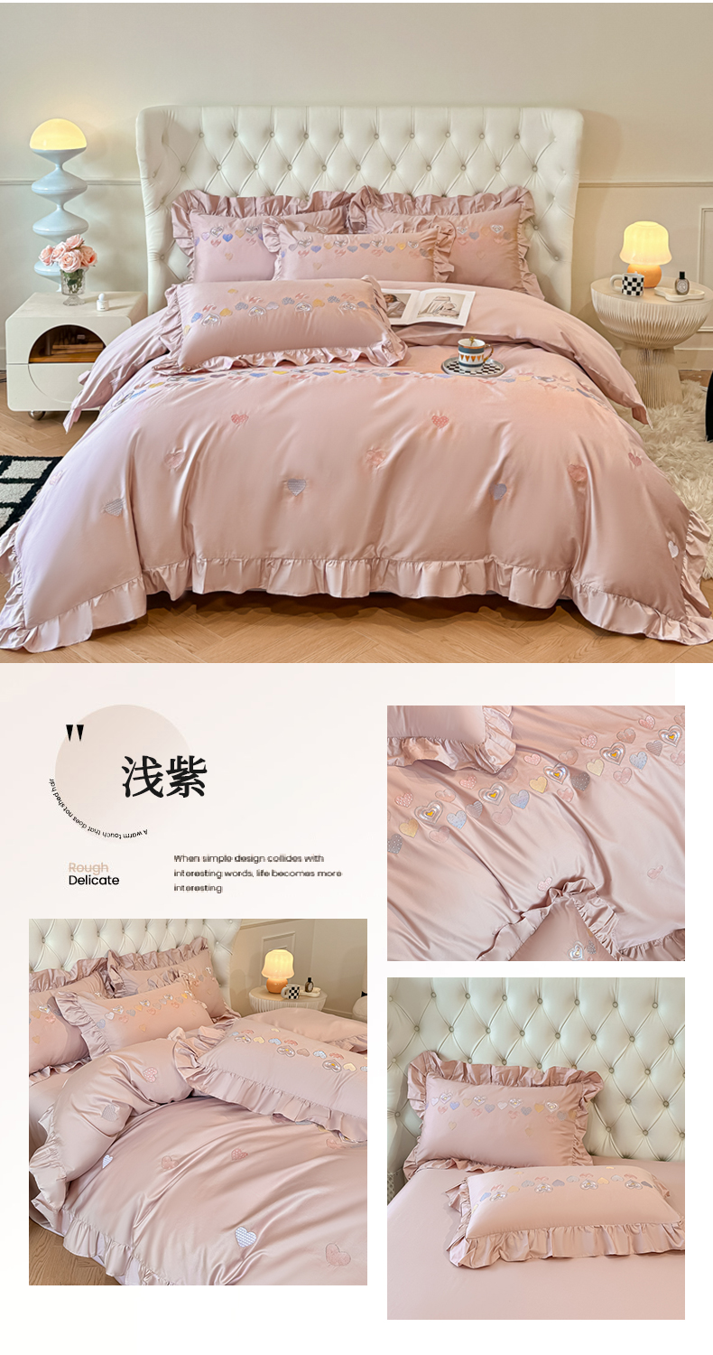 商品名称:魅都 2025新款100S全棉刺绣款四件套-心恋 浅紫