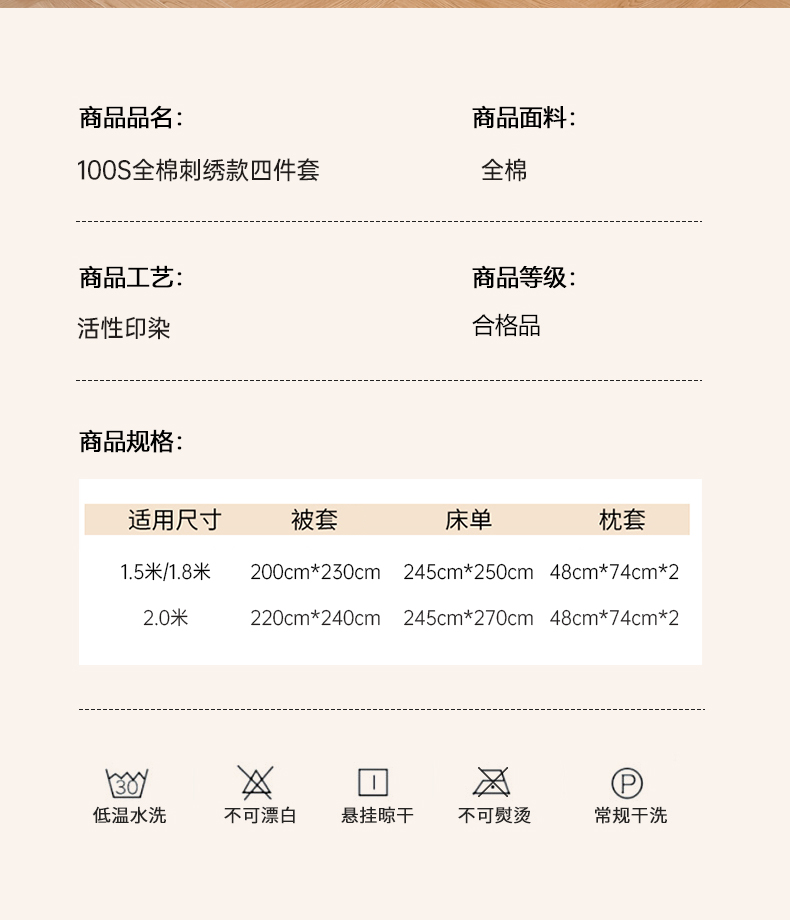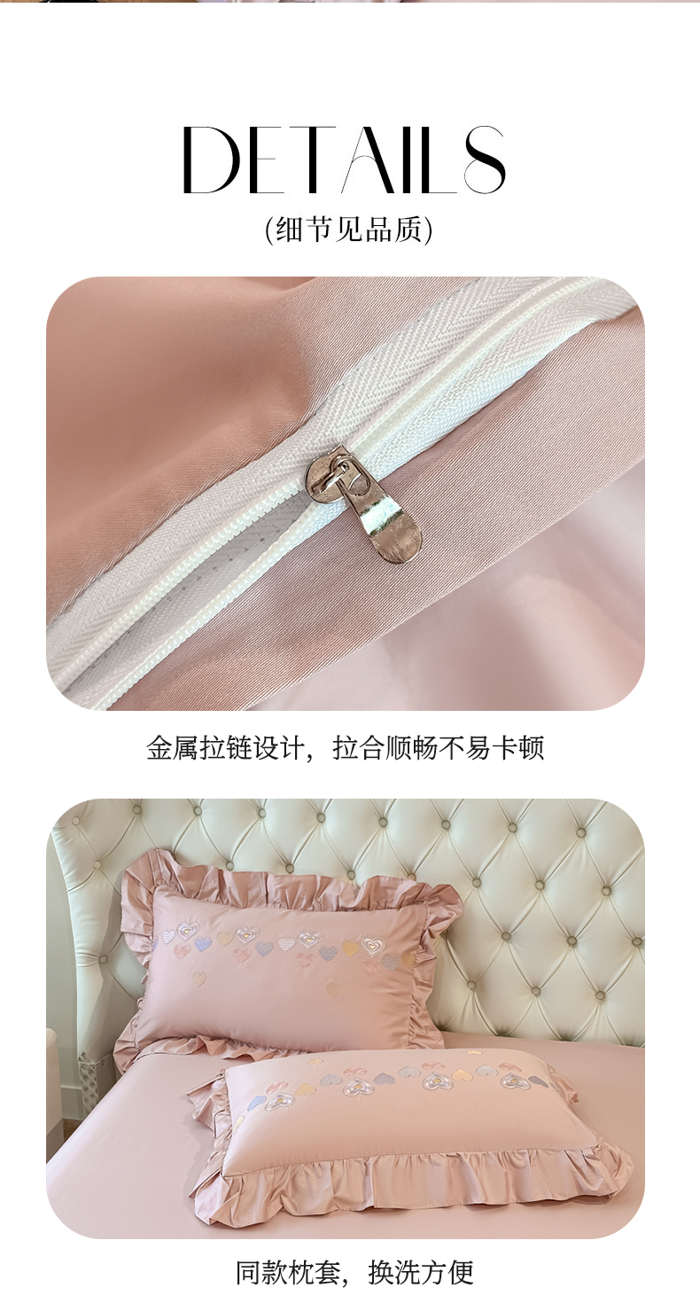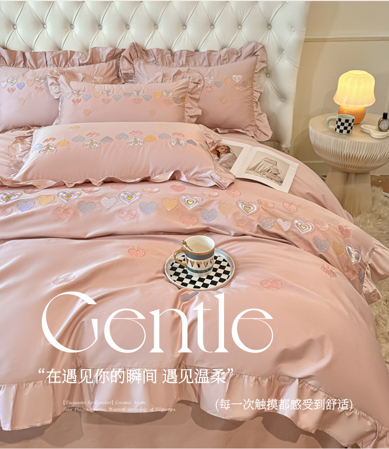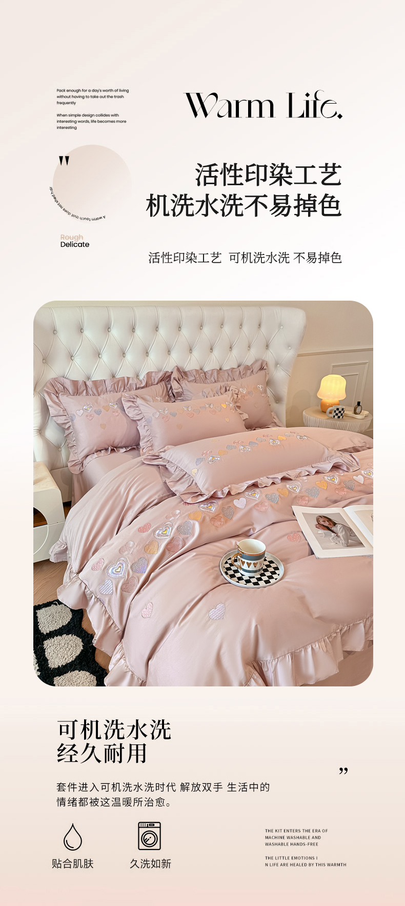 商品名称:魅都 2025新款100S全棉刺绣款四件套-心恋 浅紫
