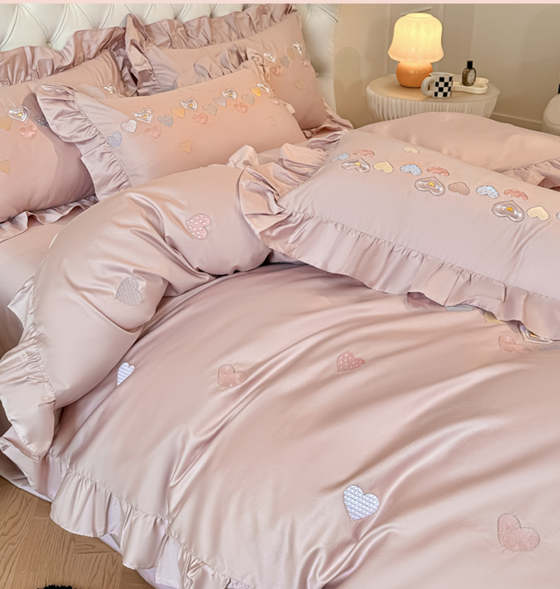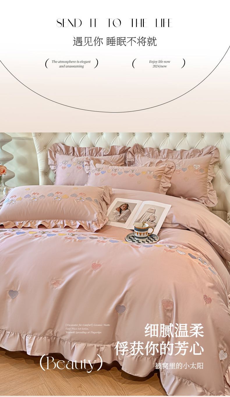 魅都 2025新款100S全棉刺绣款四件套-心恋 浅紫