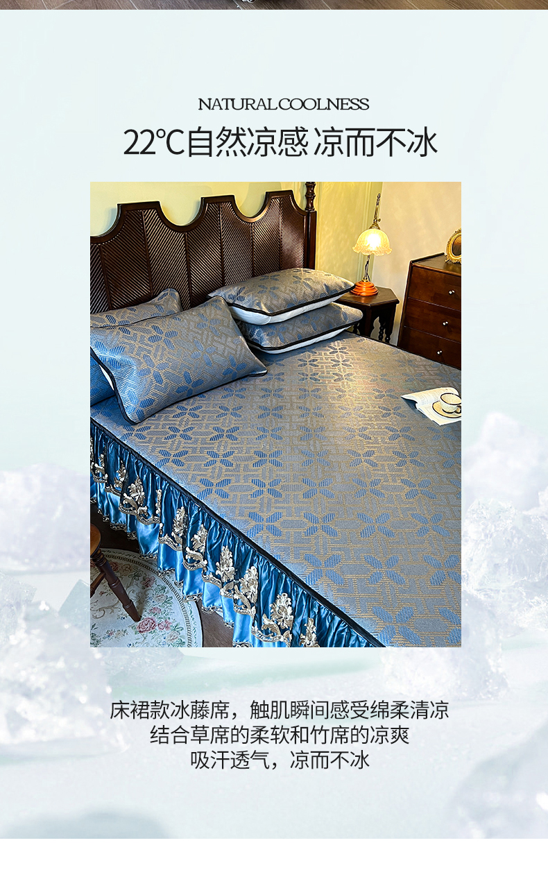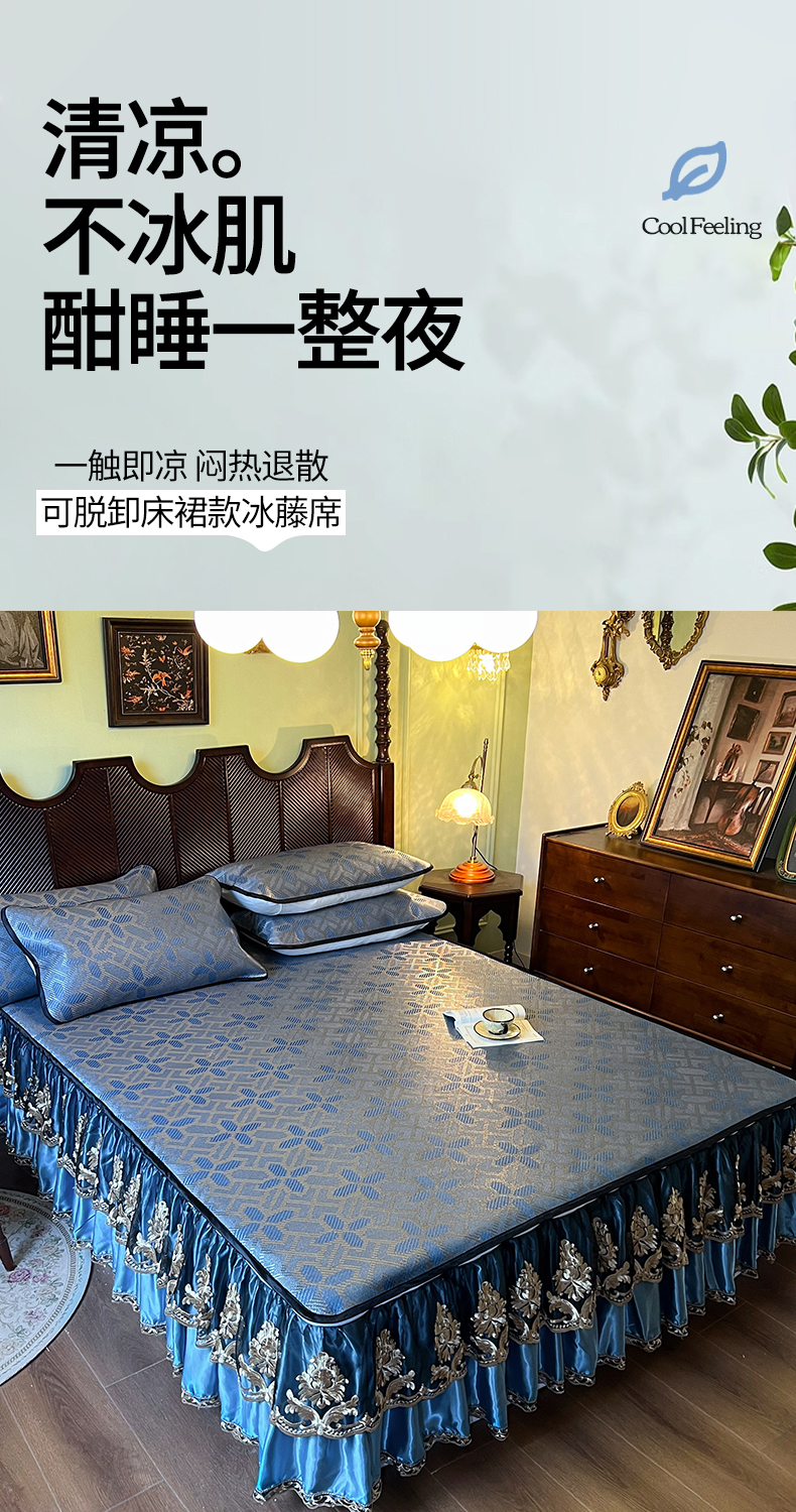 2.0*2.2床凉席三件套床裙200*220 枕套一对