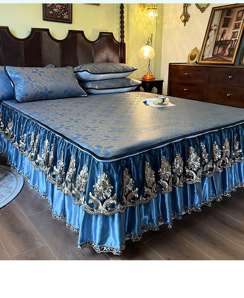 (总)网红馆(ck家纺) 2025新款色织提花牛奶绒床裙四件套-洛丽塔系列,洛丽塔-豆沙,洛丽塔-蓝色,洛丽塔-米色