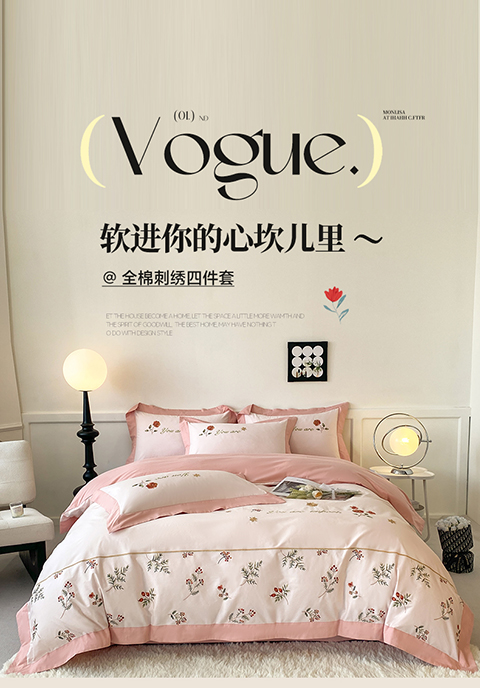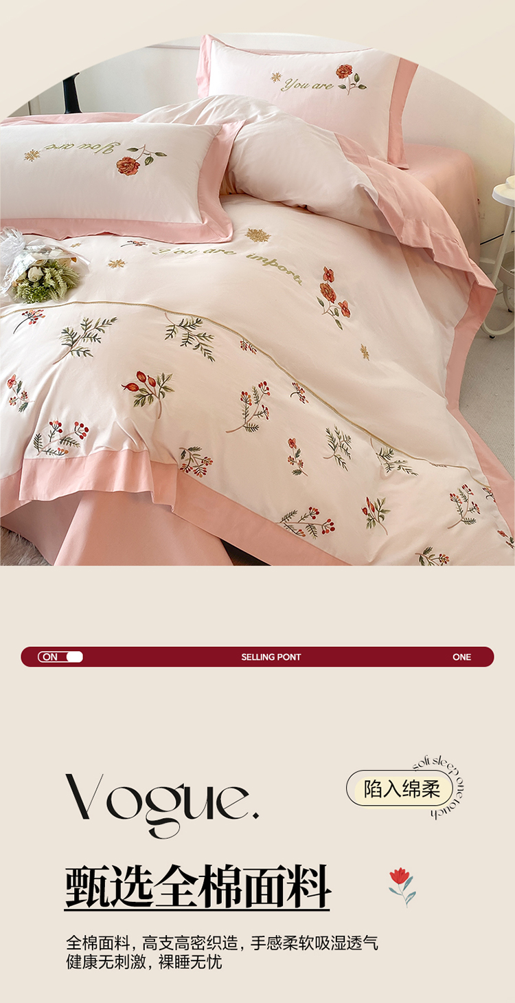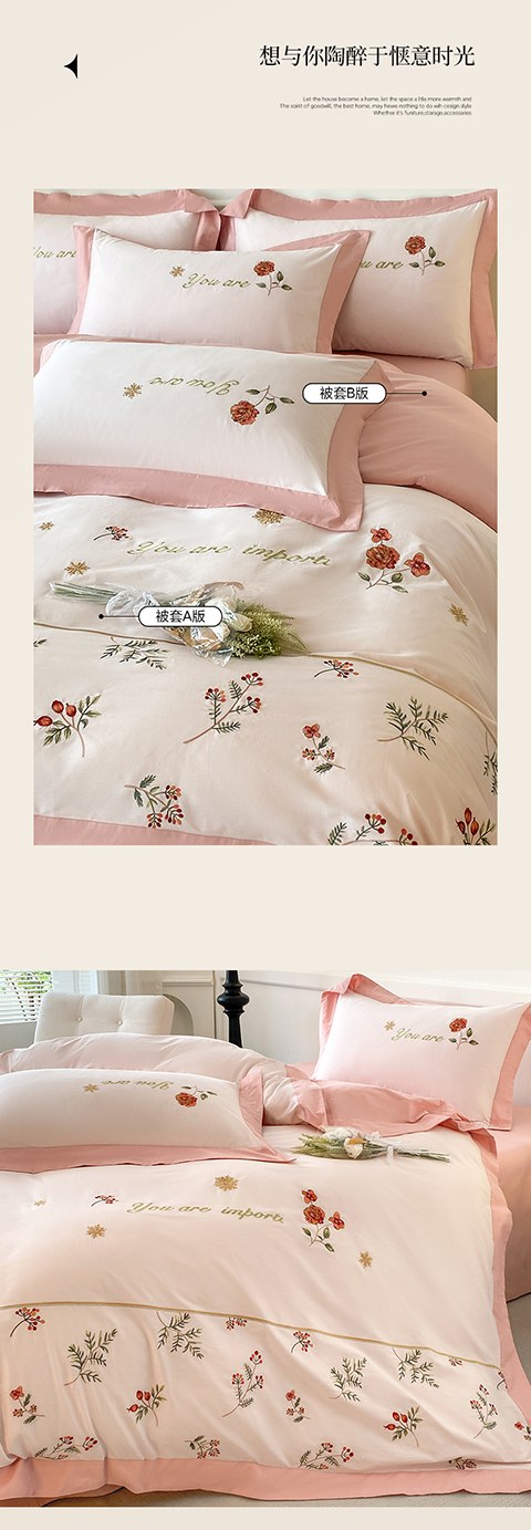 (总)遇见家居生活馆 2025新款亲肤棉刺绣四件套-花田里,花田里-白粉,花田里-冰清绿,花田里-公主粉,花田里-灰粉,花田里-香槟色,花田里-香芋紫,花田里-樱花粉