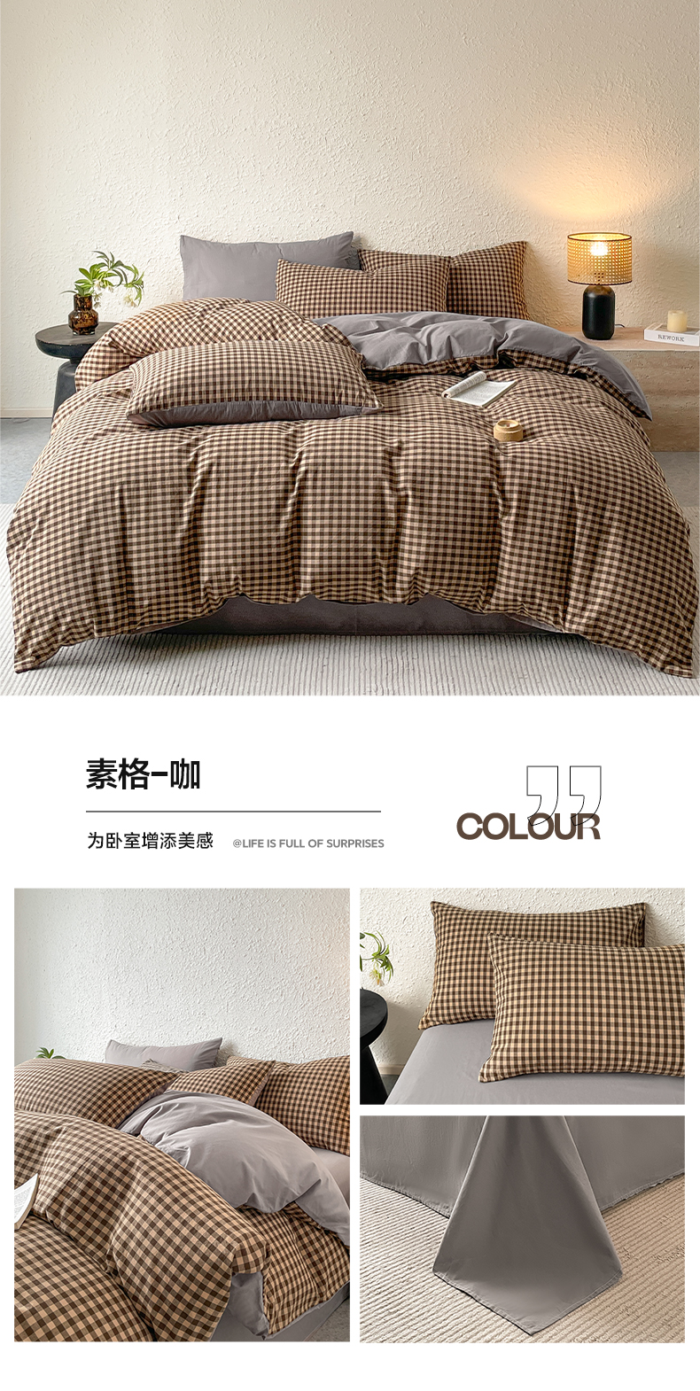 商品名称:恋人优选 2025新款条纹全棉纯棉水洗系列单被套 被套单件 素格-咖