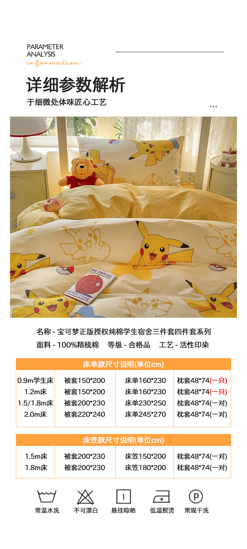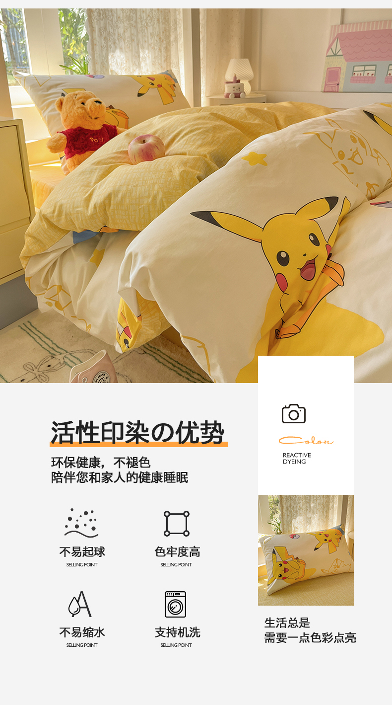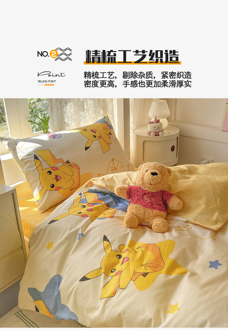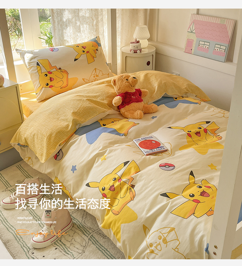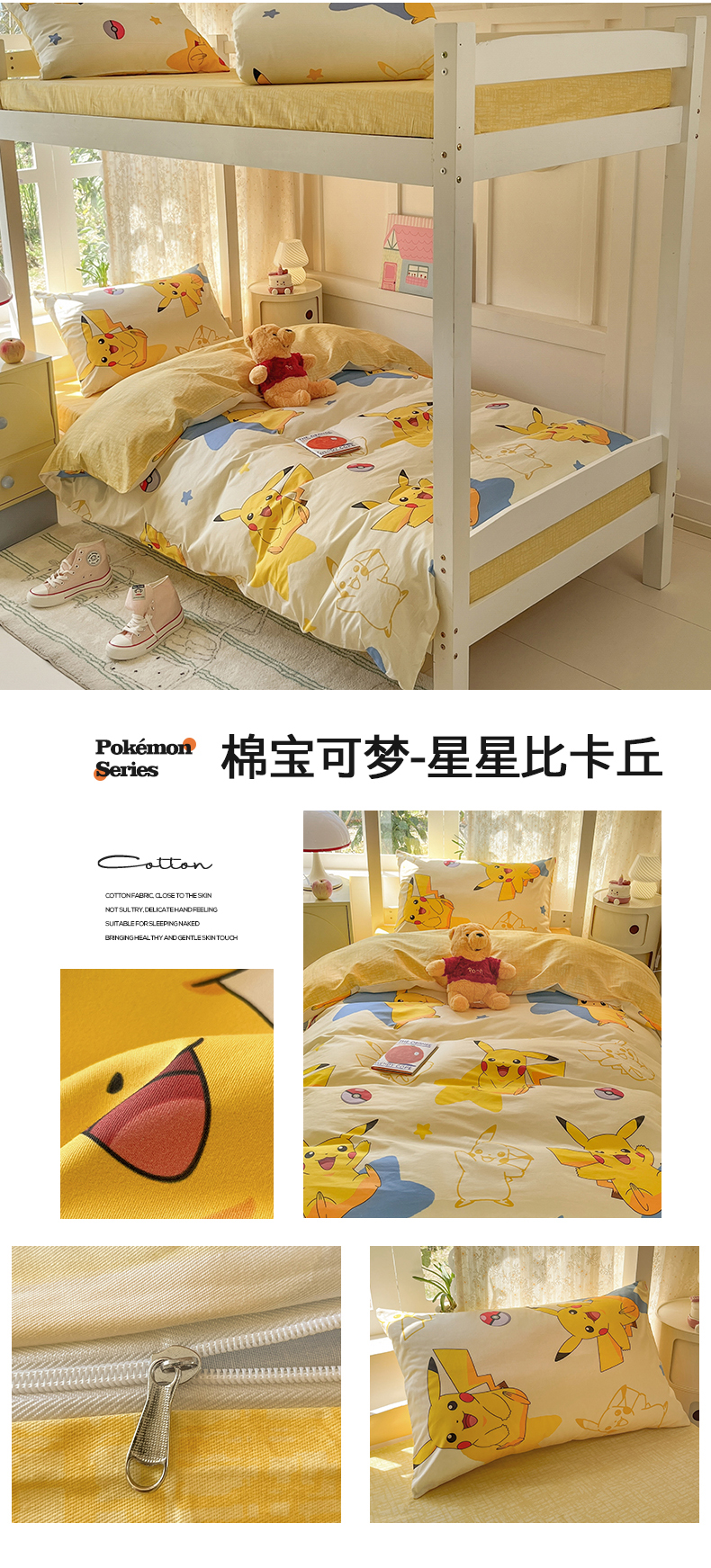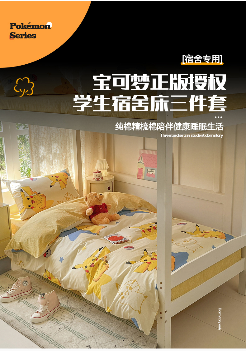当前位置: 91家纺网 > 商品网购 > 床品套件 > 四件套 > 全棉普通四件套 > 金爱家 2025新款宝可梦正版授权纯棉卡通皮卡丘学生宿舍三件套四件套系列 棉宝可梦-星星比卡丘