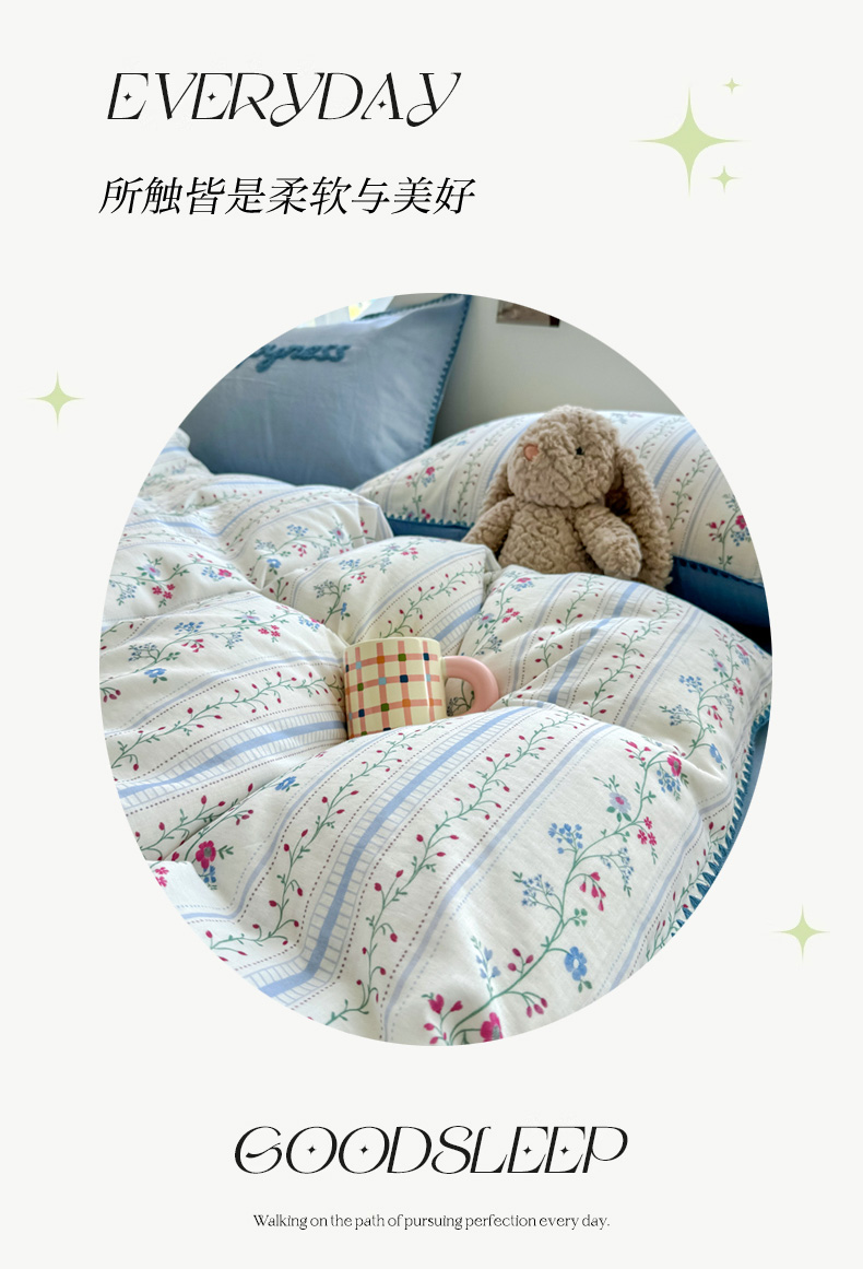 当前位置: 91家纺网 > 商品网购 > 床品套件 > 四件套 > 全棉普通四件套 > 恋佳居 2026新款A类全棉有氧双层纱印花毛巾绣贝壳边四件套 小岛游春