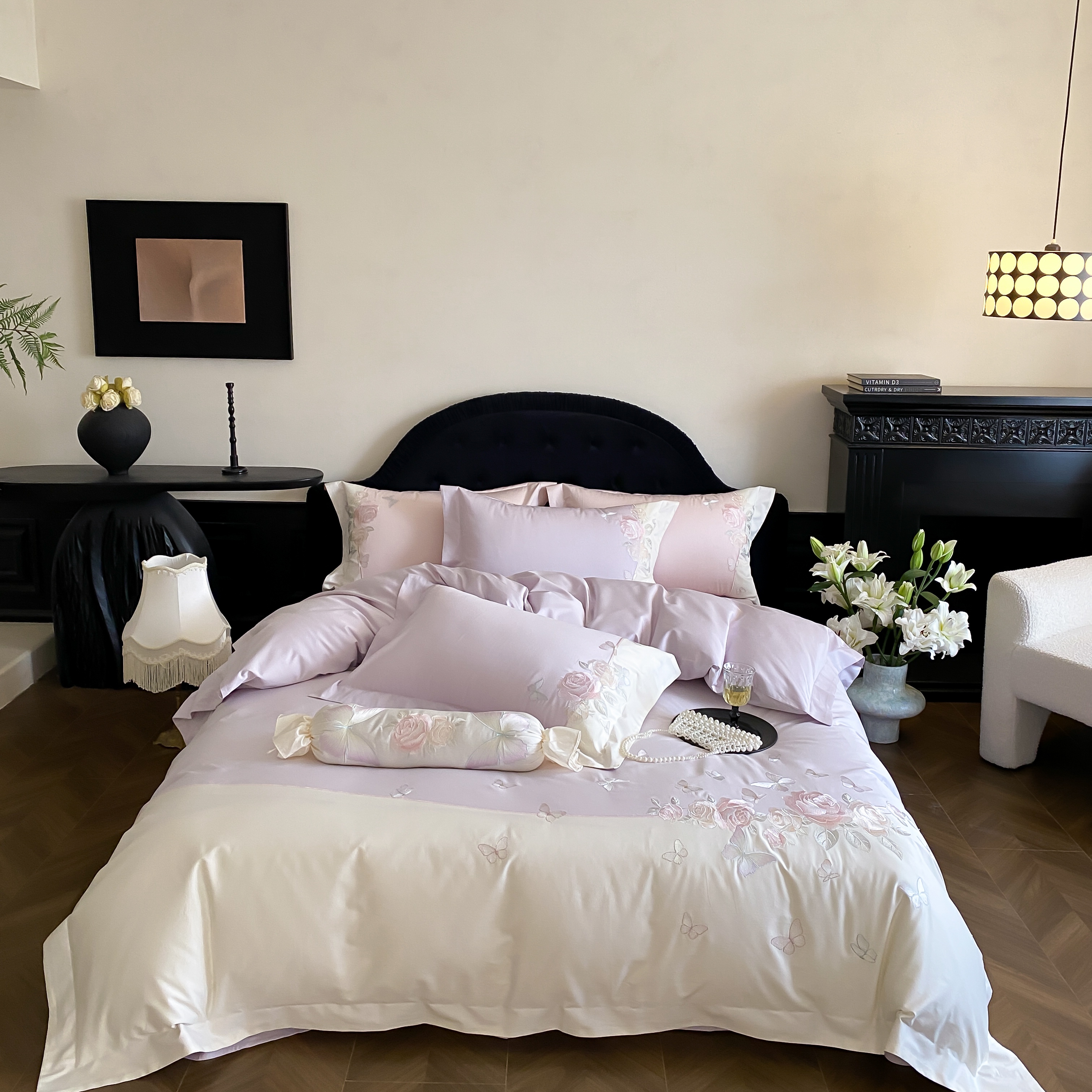 商品名称:佳汐蓝家纺 2025春夏新款贡缎长绒棉蝶梦花缘四件套 蝶梦花缘·紫