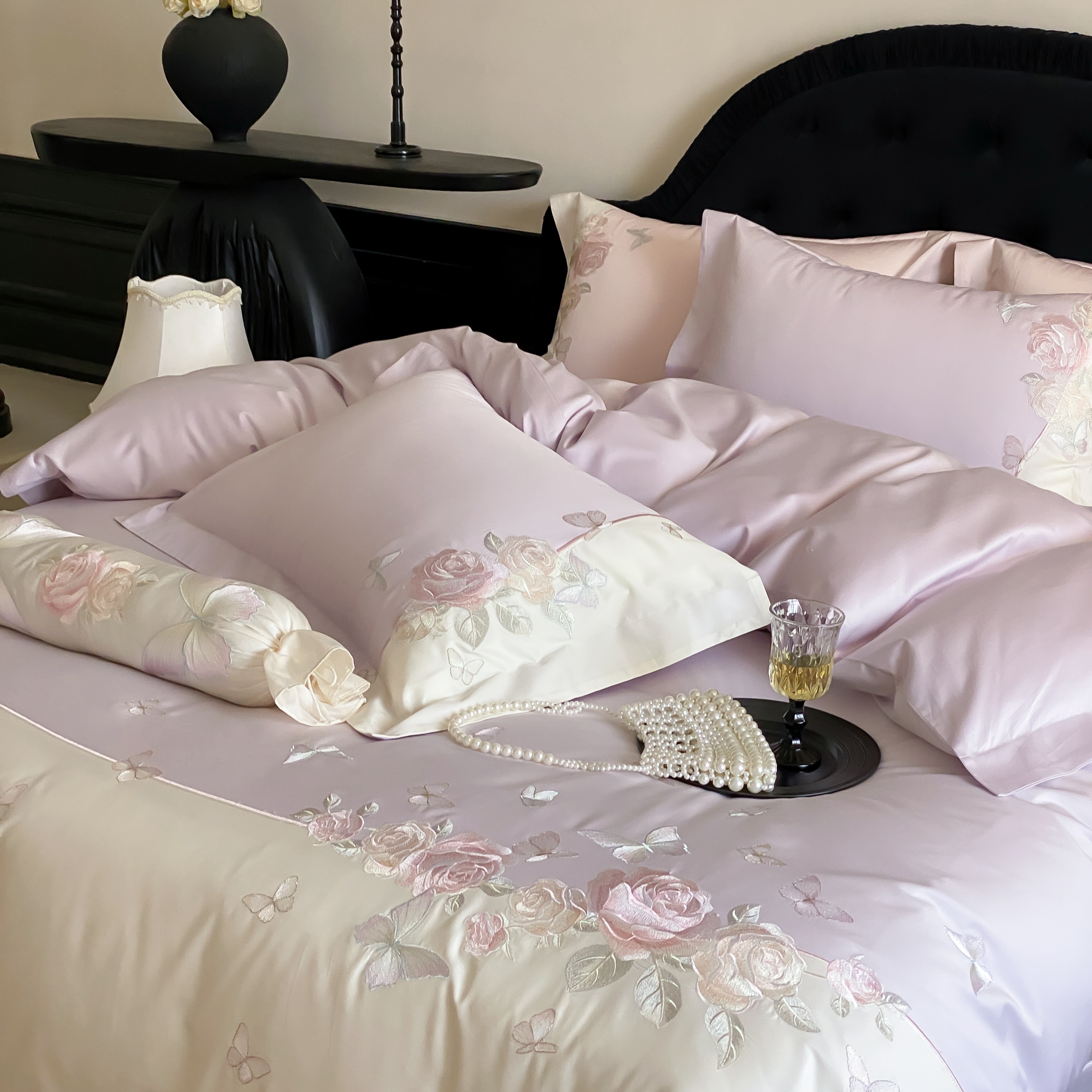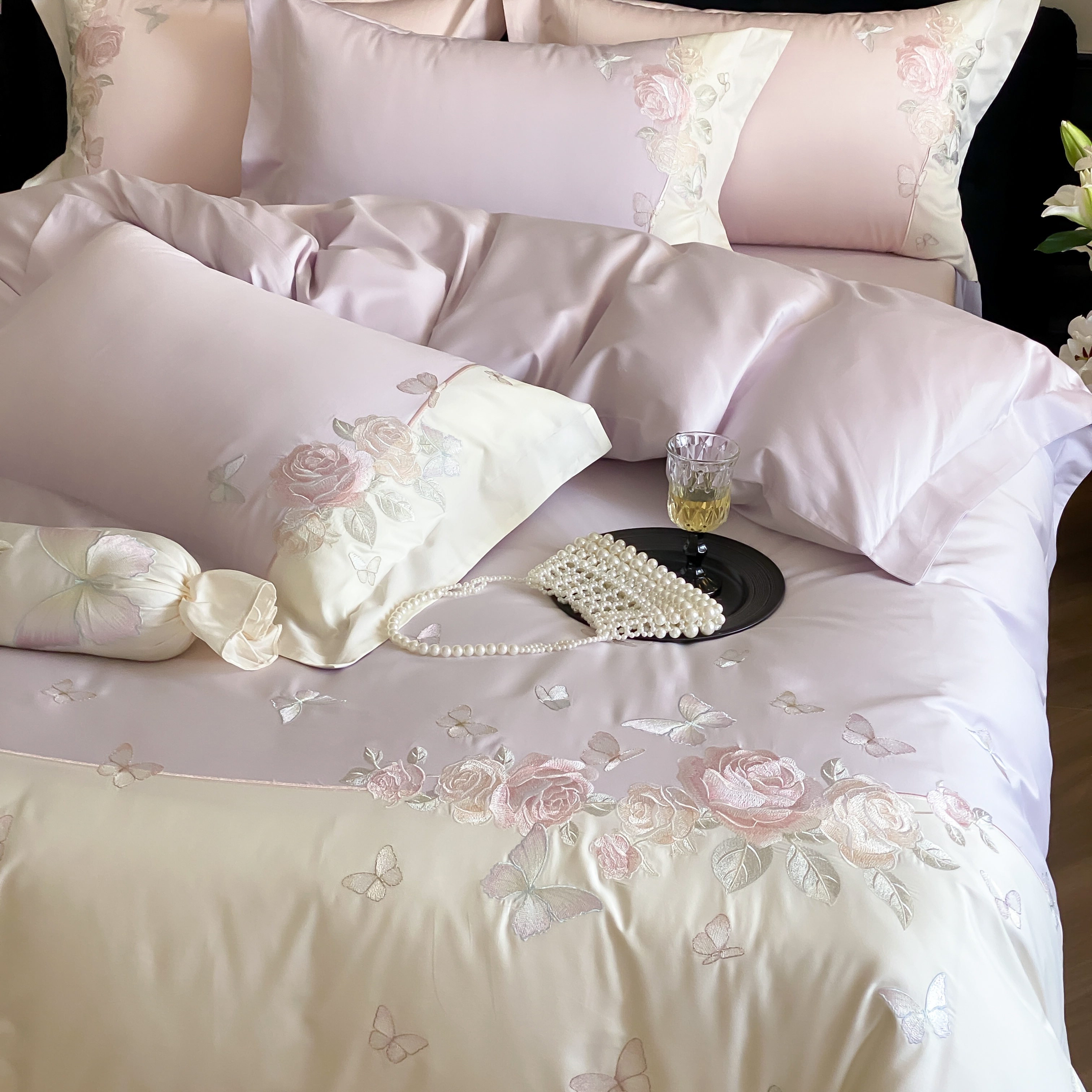 (总)佳汐蓝家纺 2025春夏新款贡缎长绒棉蝶梦花缘四件套,蝶梦花缘·粉,蝶梦花缘·紫