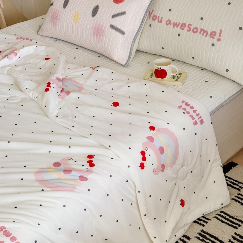 商品名称:顾里家纺 2025新款韩系少女凉感冰皮夏被夏凉被空调被 粉格花猫