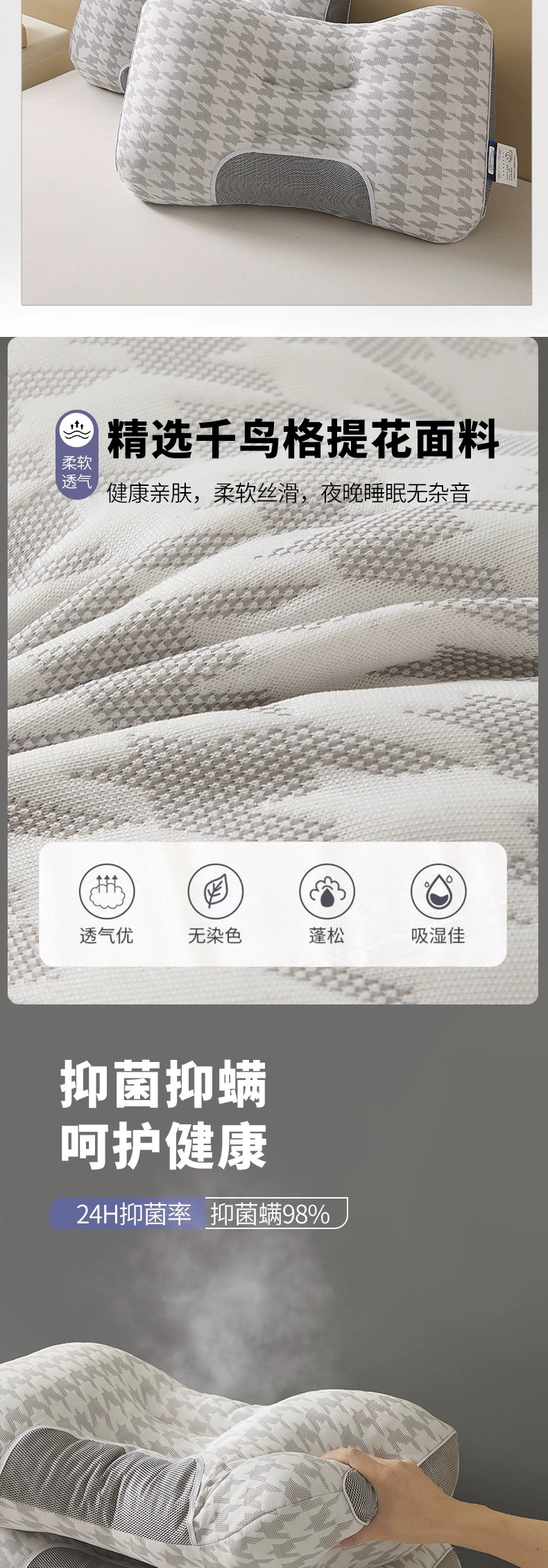 当前位置: 91家纺网 > 商品网购 > 枕头/枕芯/保健枕/颈椎枕 > 普通枕芯 > 雅晨枕芯 2025新款千鸟格大蜂窝spa枕头枕芯 千鸟格提花spa枕 40x60cm中枕/只