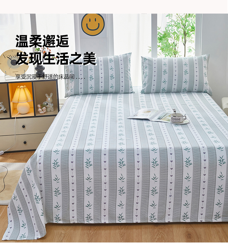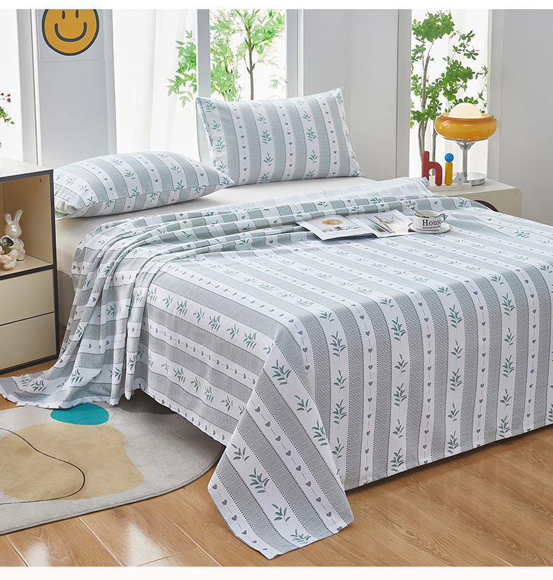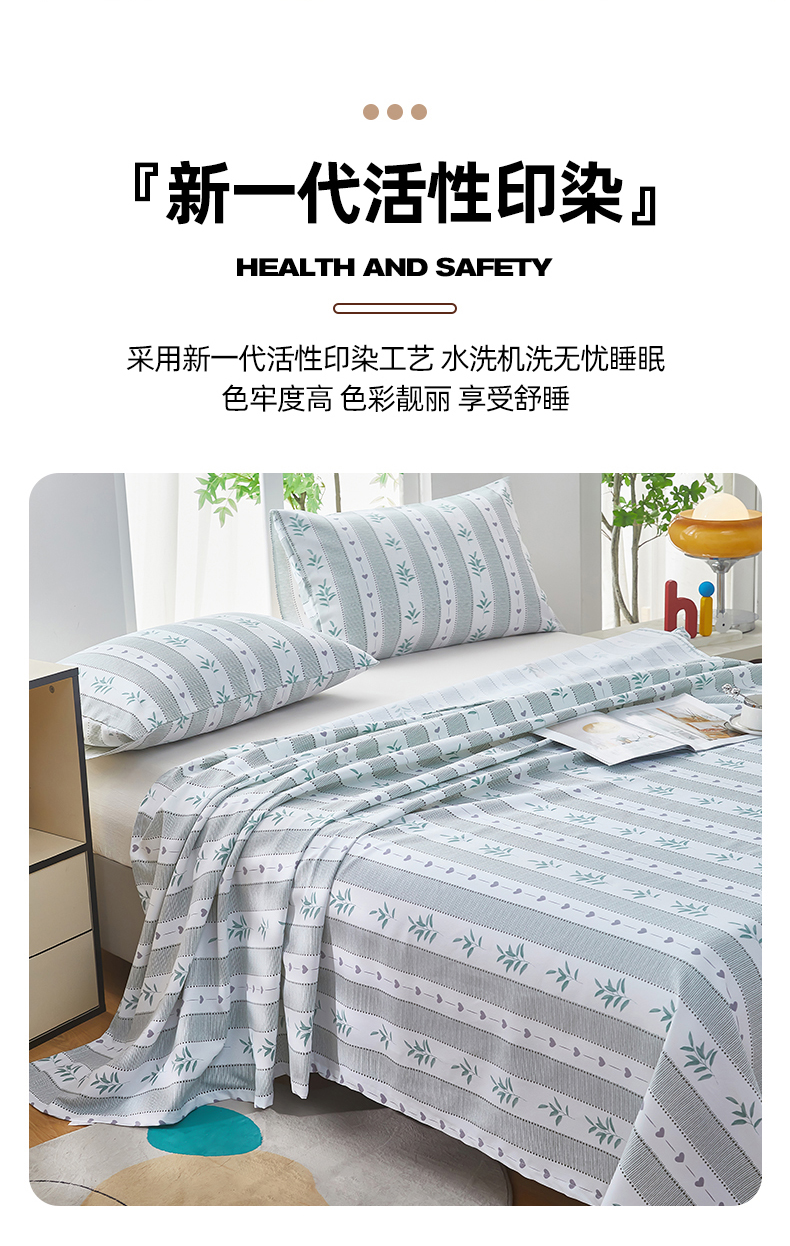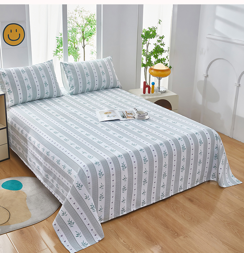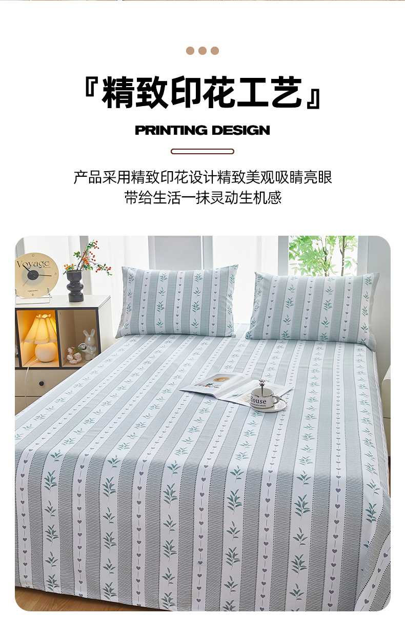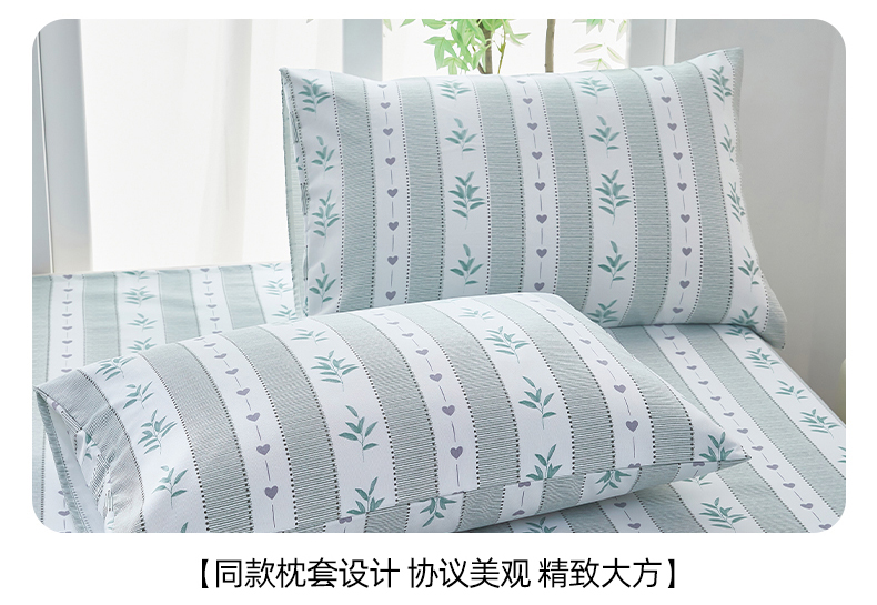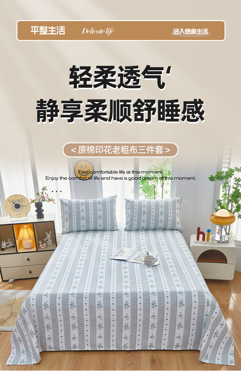 商品名称:雲归梦 2025新款原棉老粗布床单席子凉席印花三件套 情意绵长-绿