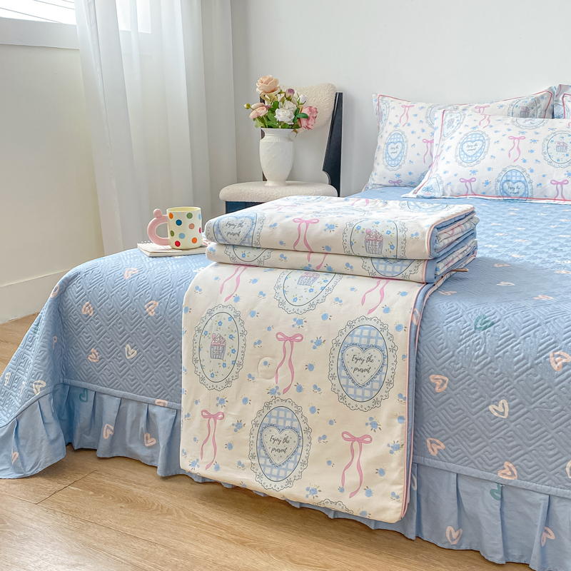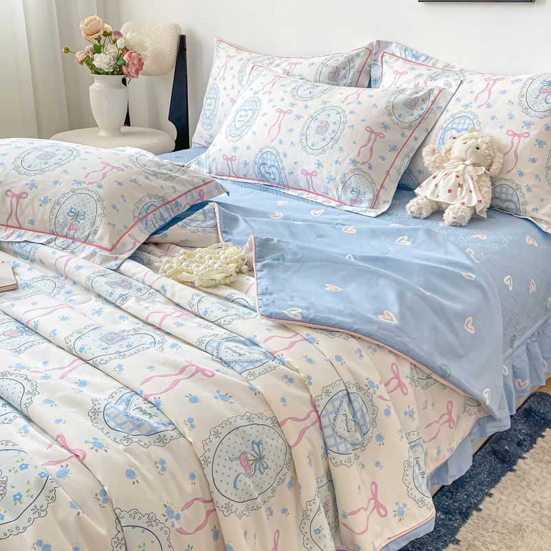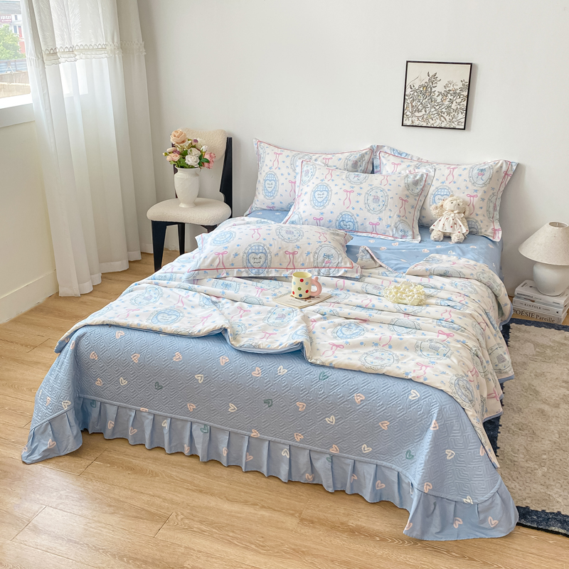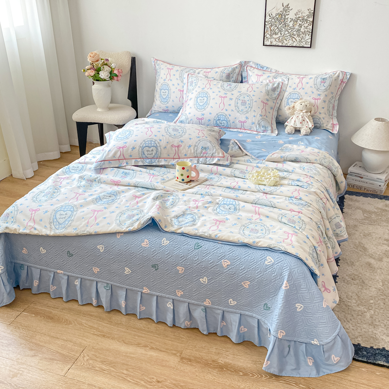 商品名称:富之航家纺 2025新款全棉印花床盖四件套 甜心波