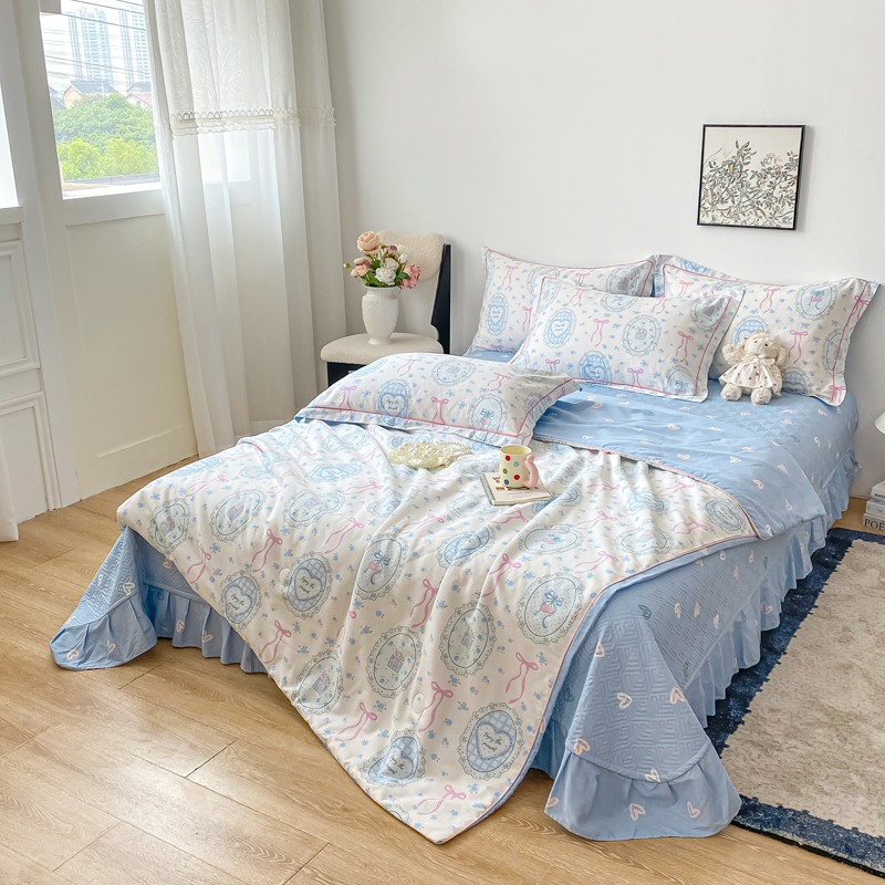 (总)富之航家纺 2024爆款公主风床盖四件套新款小清新提花针织棉床盖四件套,蝶恋花咖,比心,饼干熊,芙蔓,复苏,格调,剪秋,蓝图,梦蝶,蜜桃,莫吉,清欢,素漫,雾里花,相思兰,玉隐