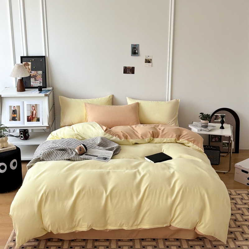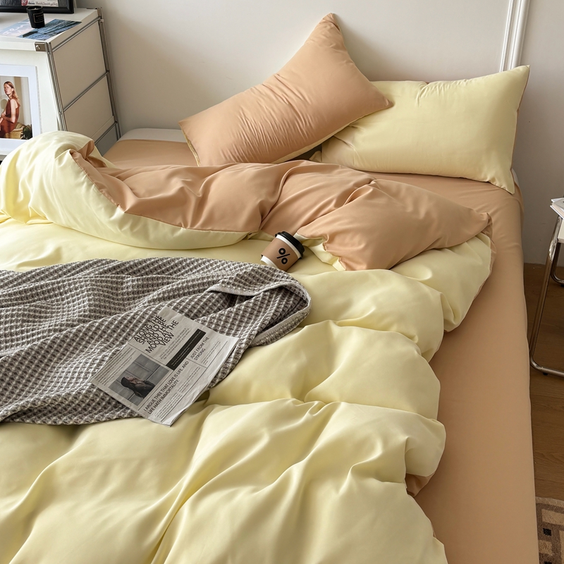 商品名称:百花王 2025新款亲肤舒适简约纯色水洗棉四件套 奶茶芝士