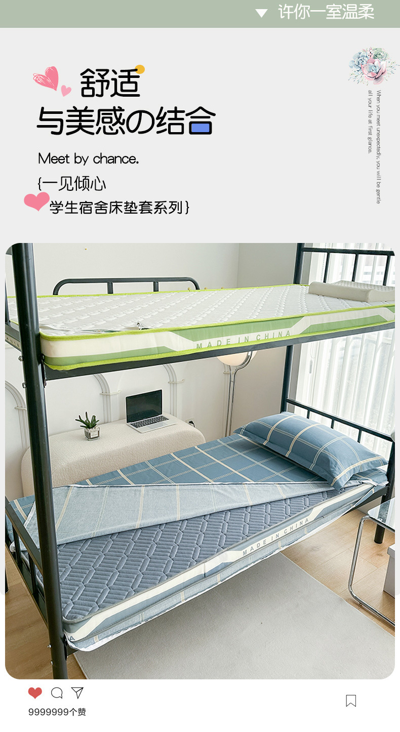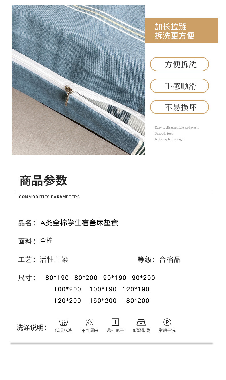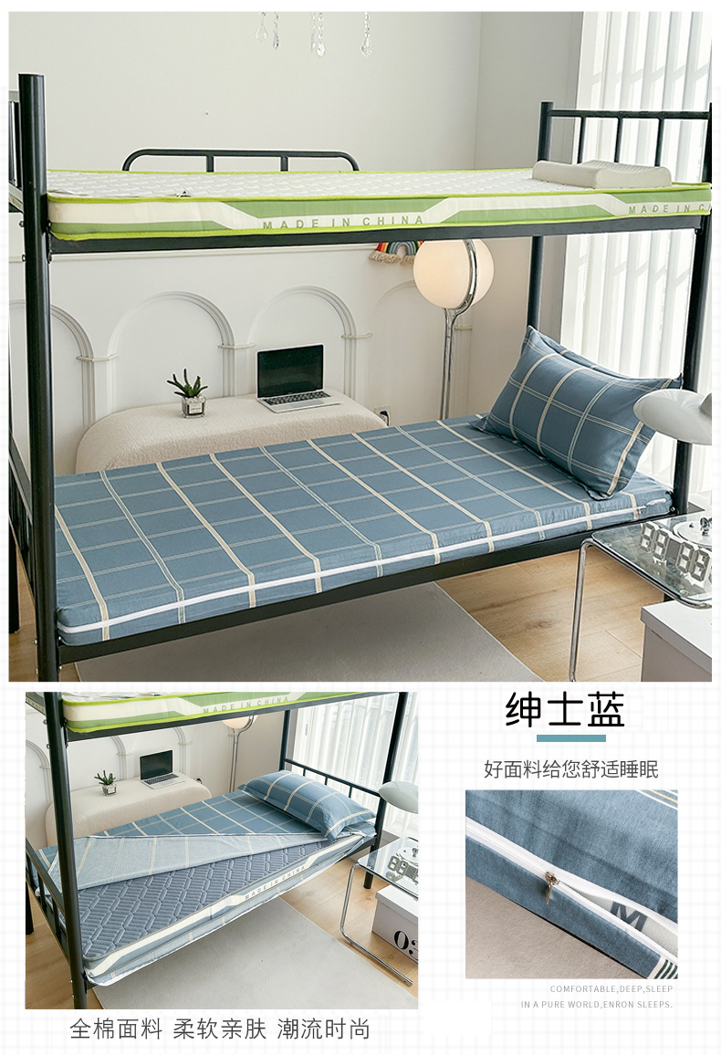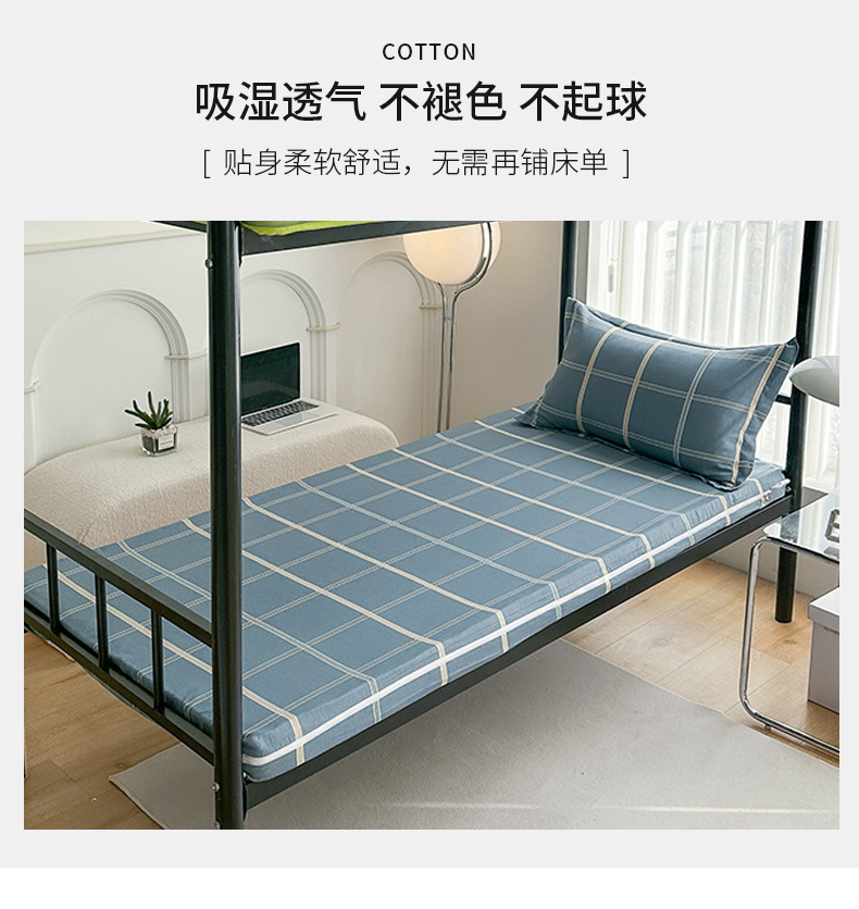 • 91家纺网 家纺一手货源 找家纺 凌云2025年新品全棉学生宿舍床垫套全包拉链式床笠单件纯棉床罩保护套 绅士蓝