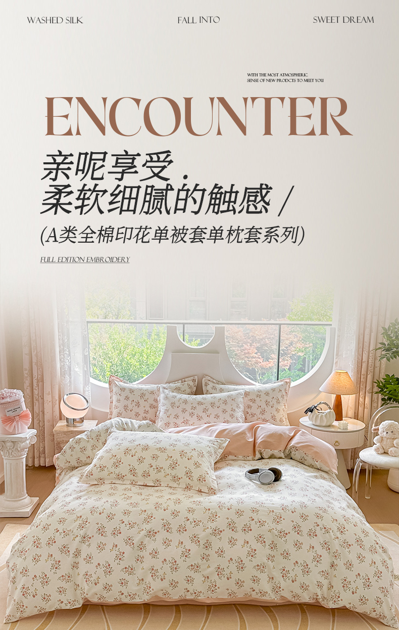 (总)芙绣家纺 2025新款A类全棉双层纱小清新印花单被套学生单被套单枕套,春风里,繁花似锦,花间絮语,假日甜心猫-粉色,假日甜心猫-米白,漫天心,蔷薇梦境,十里桃花,甜心格格,组合图仅供参考