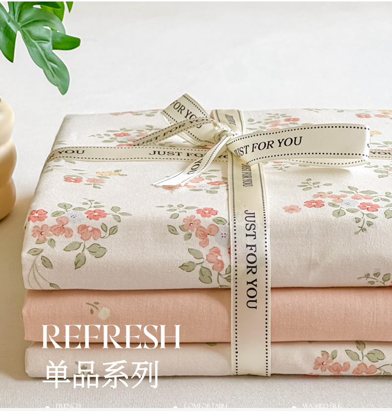 芙绣家纺 2025新款A类全棉小清新印花单被套单枕套学生单品系列 花期如梦