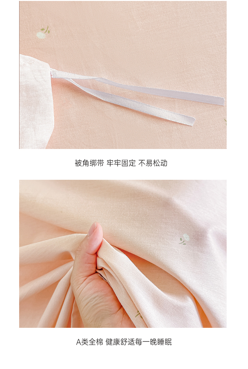 商品名称:芙绣家纺 2025新款A类全棉小清新印花单被套单枕套学生单品系列 花期如梦