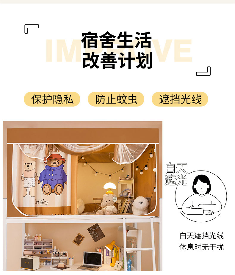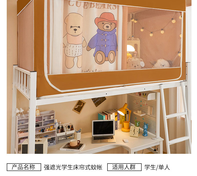 商品名称:水妙家纺 2025年新款强遮光学生上下铺床帘蚊账 小熊一家