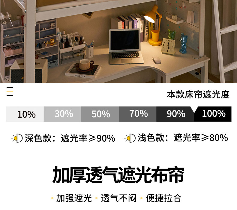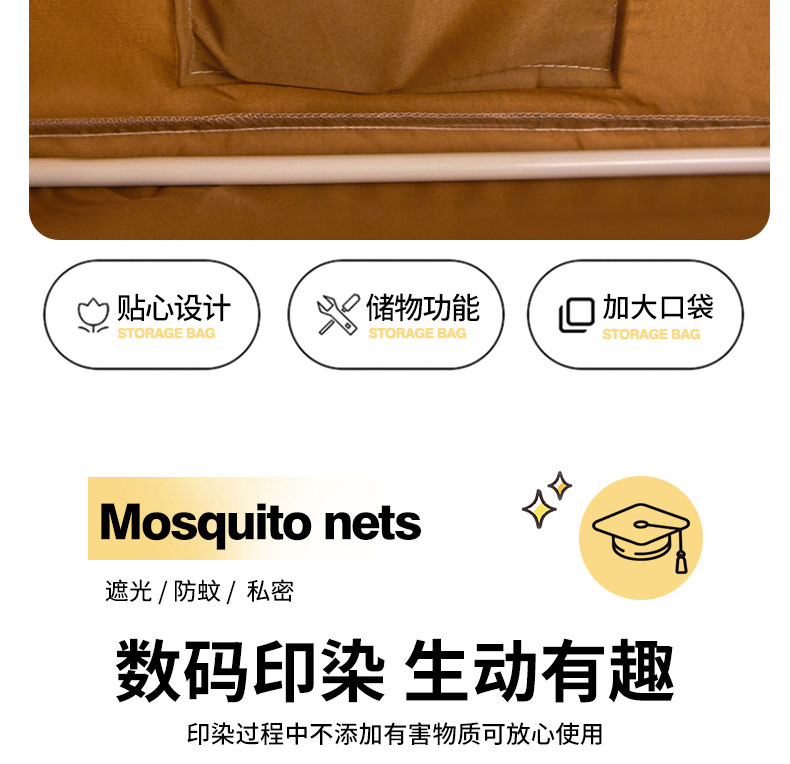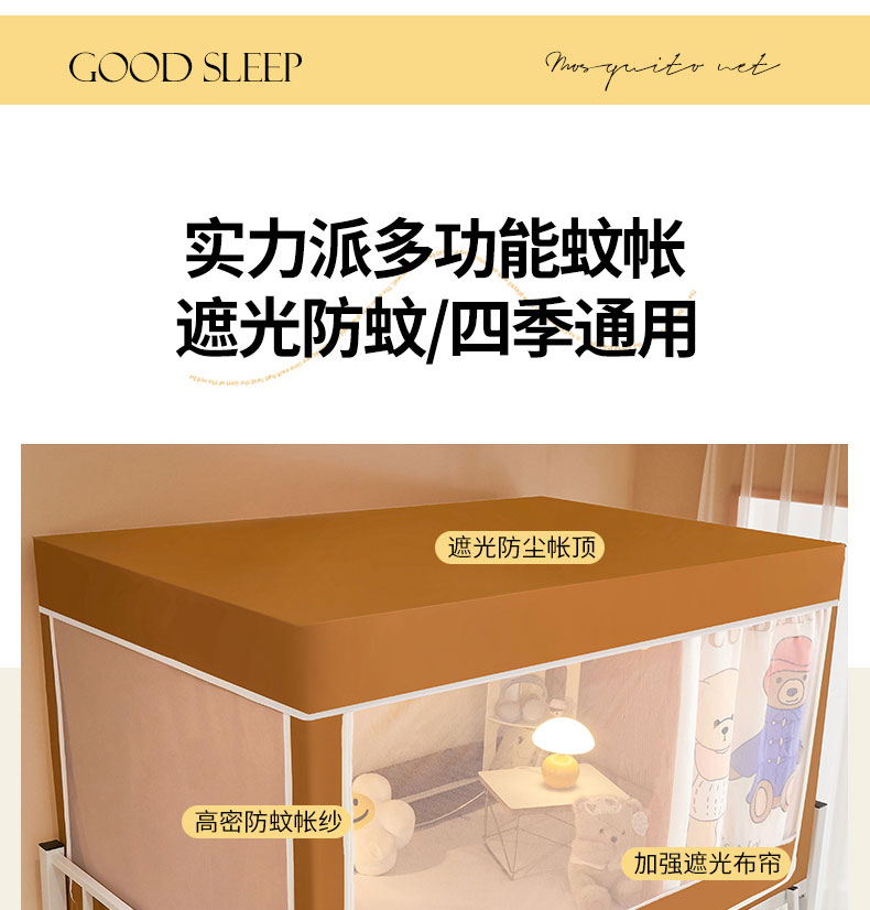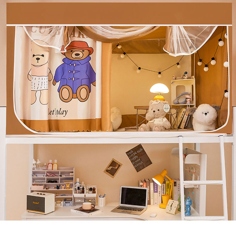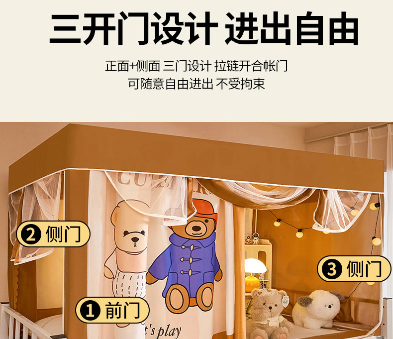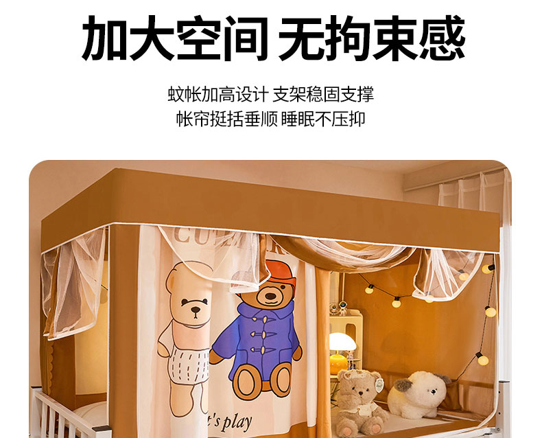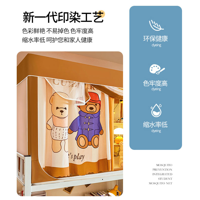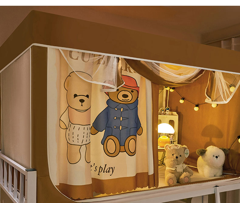 水妙家纺 2025年新款强遮光学生上下铺床帘蚊账 小熊一家