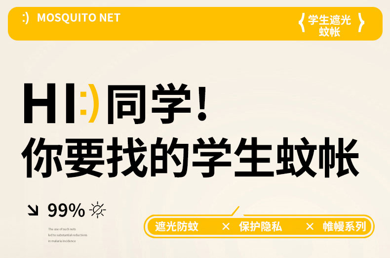 商品名称:水妙家纺 2025新款加厚强遮光蚊账学生宿舍上下铺130克斜纹加厚床帘蚊账 乐享人生