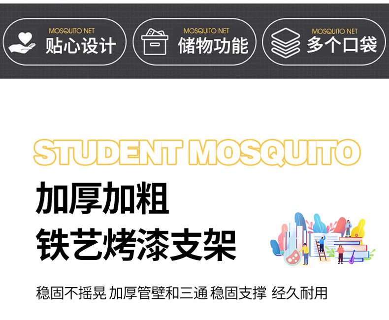 水妙家纺 2025新款加厚强遮光蚊账学生宿舍上下铺130克斜纹加厚床帘蚊账 乐享人生