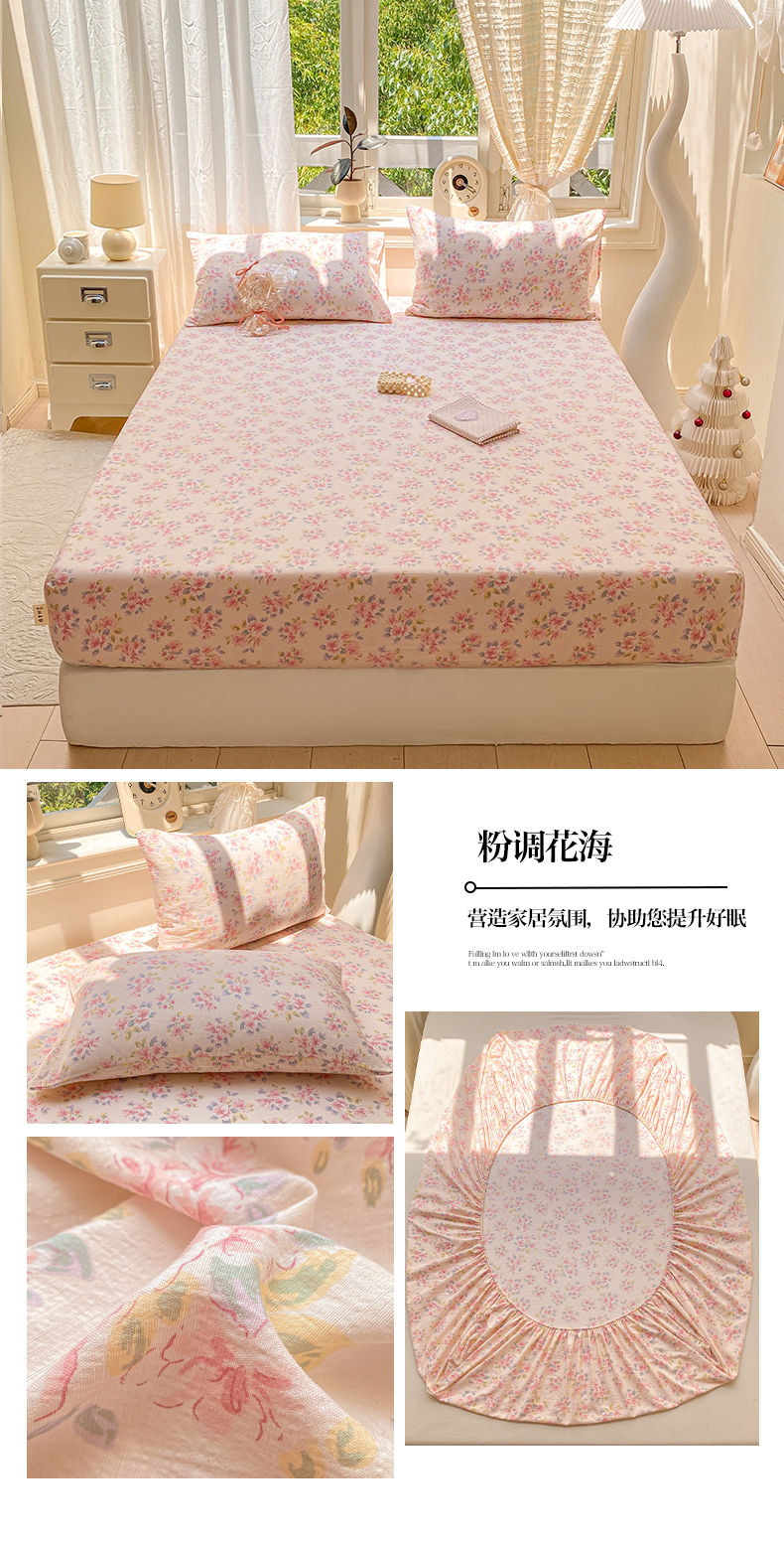 • 91家纺网 家纺一手货源 找家纺 眠势力 2025新款云感双层纱床笠三件套ins奶油风云感床垫保护套四季款 粉调花海