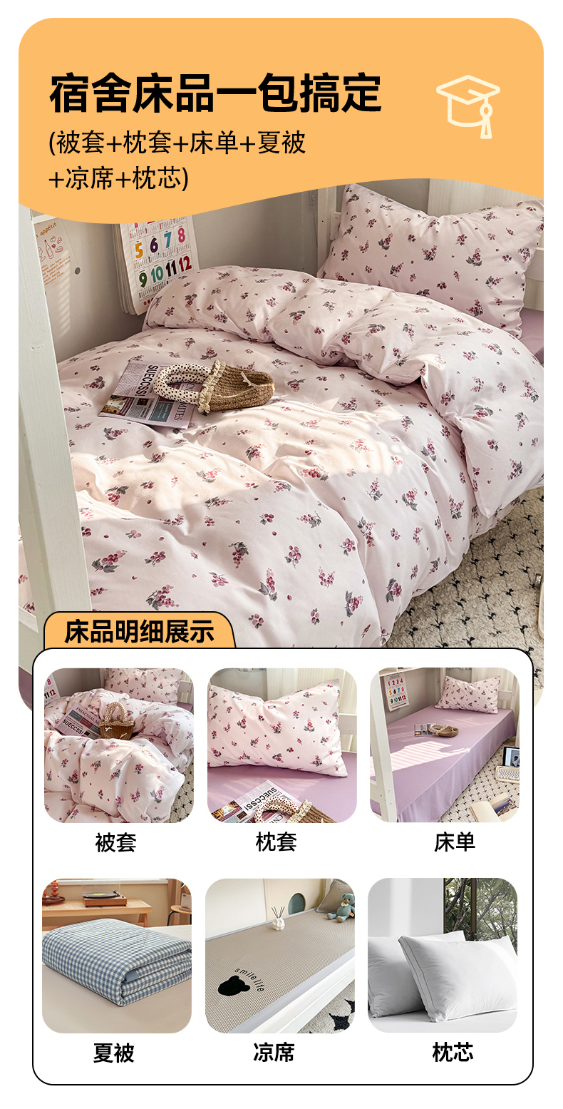 当前位置: 91家纺网 > 商品网购 > 床品套件 > 三件套 > 多品家纺 2025新款水洗棉学生宿舍上下铺大礼包三件套六件套 紫葡萄