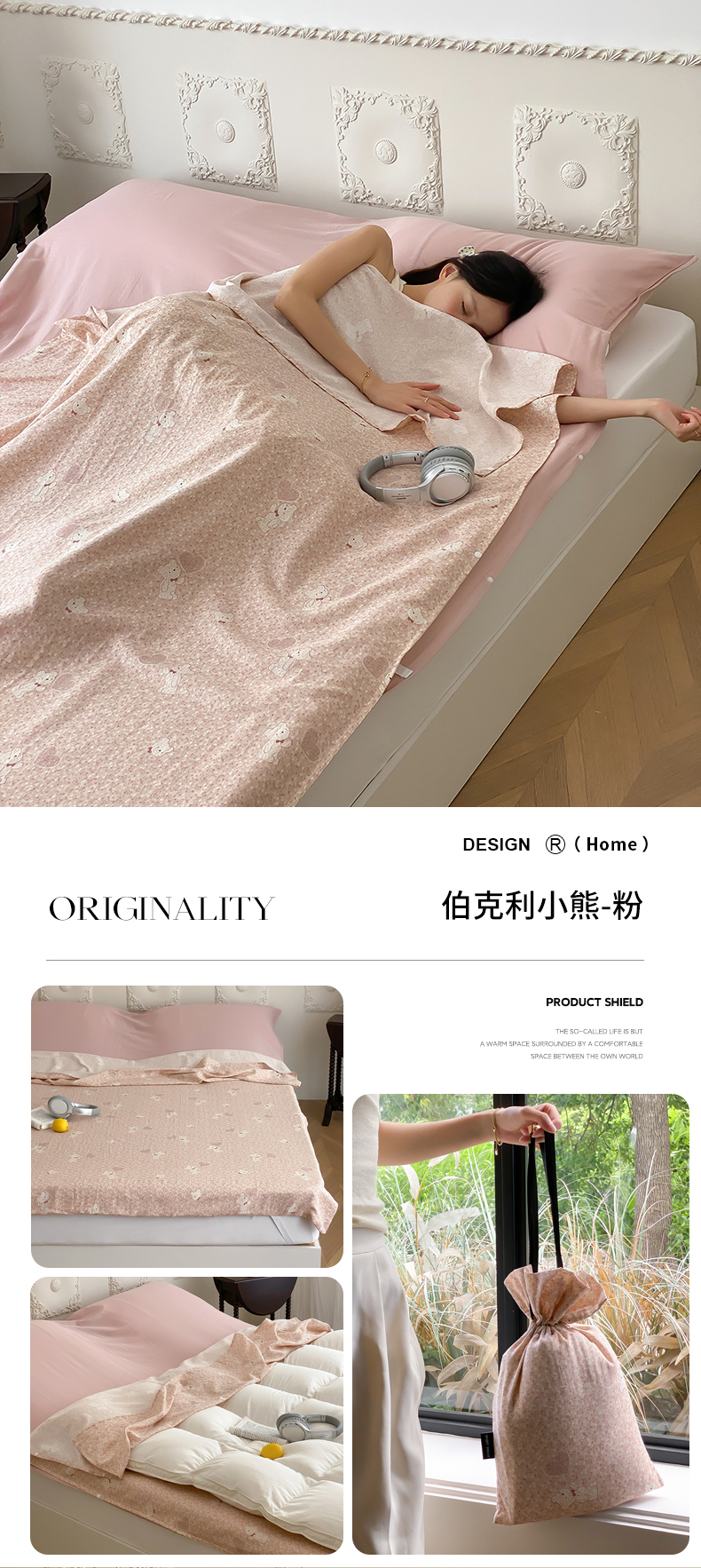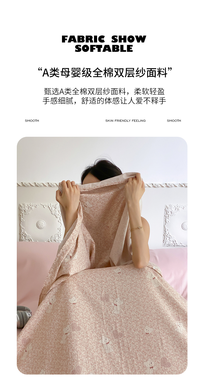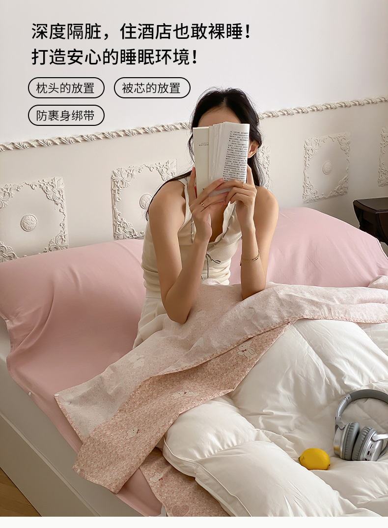 商品名称:Sweet dreams甜梦 2025新款全棉双层纱旅行 酒店睡袋 伯克利小熊-粉
