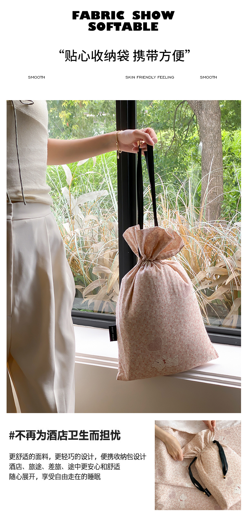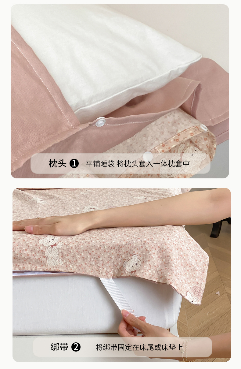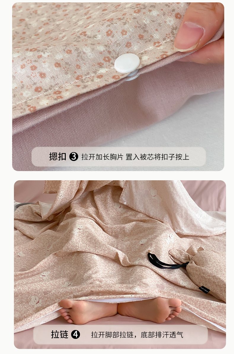 商品名称:Sweet dreams甜梦 2025新款全棉双层纱旅行 酒店睡袋 伯克利小熊-粉