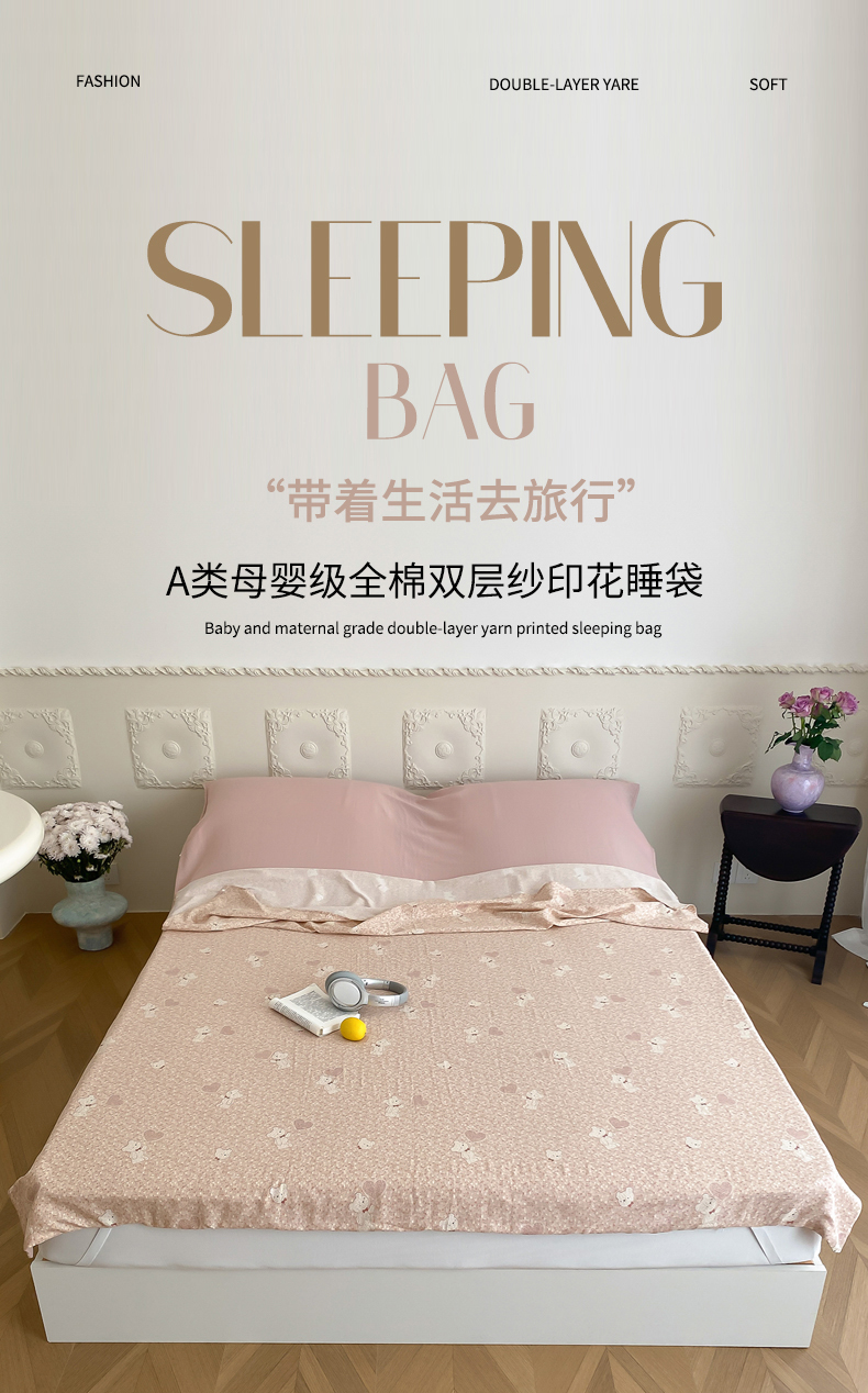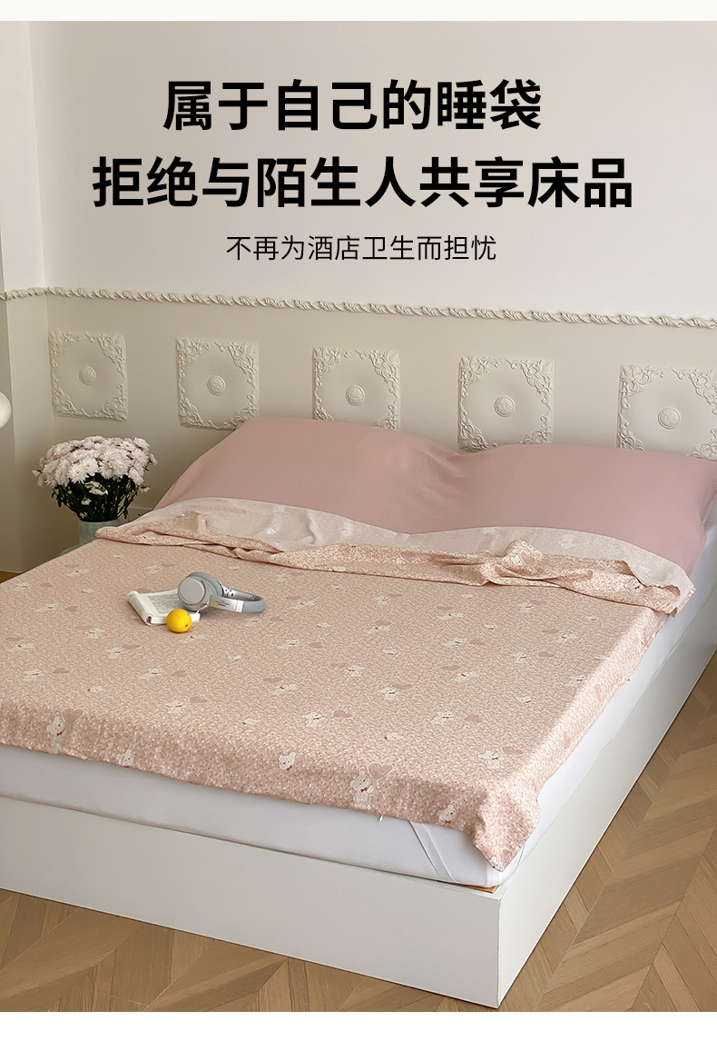 Sweet dreams甜梦 2025新款全棉双层纱旅行 酒店睡袋 伯克利小熊-粉