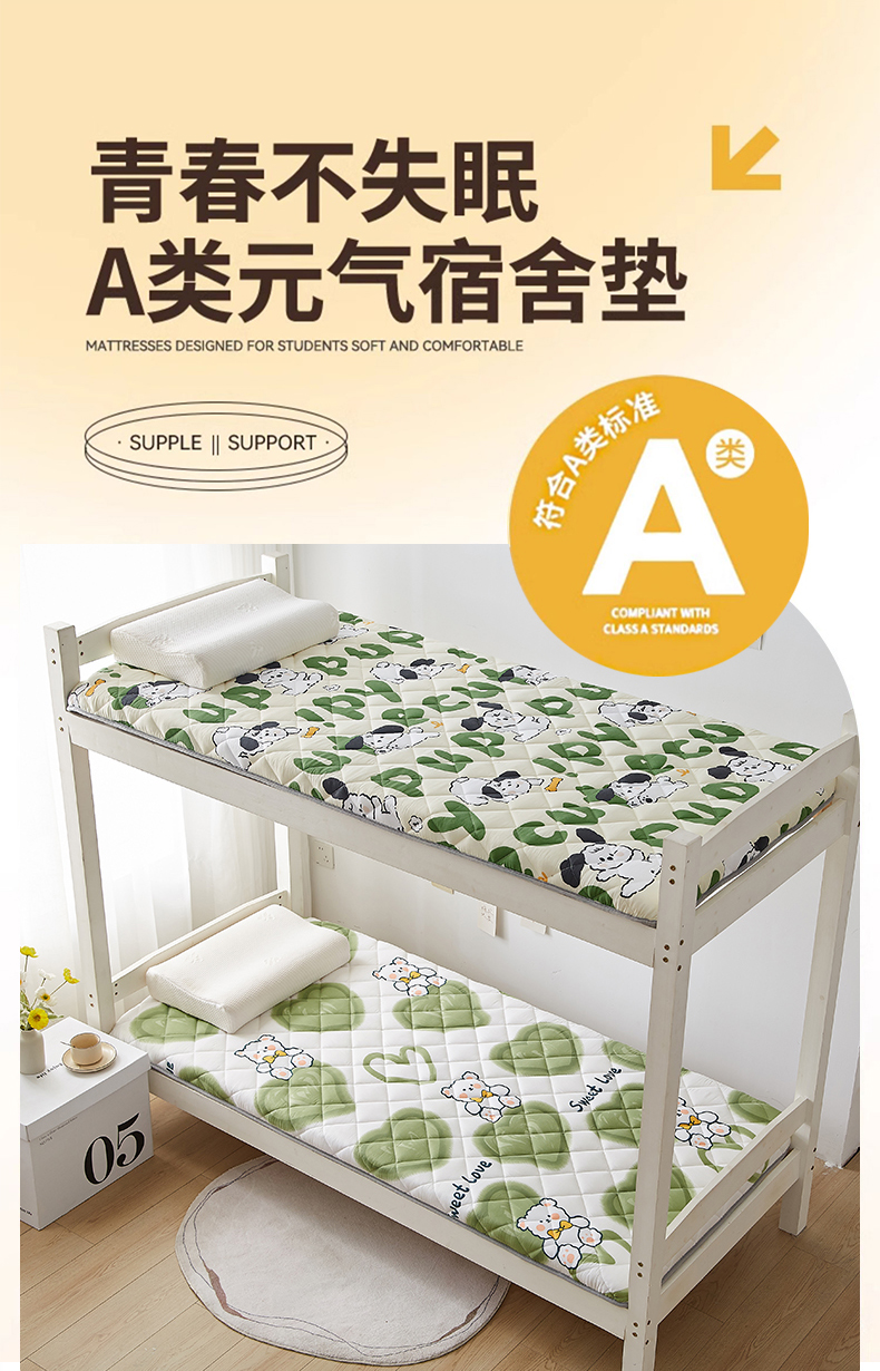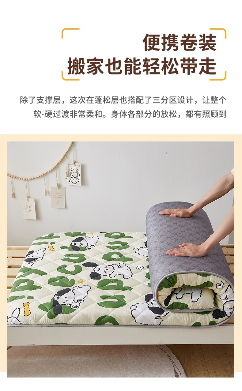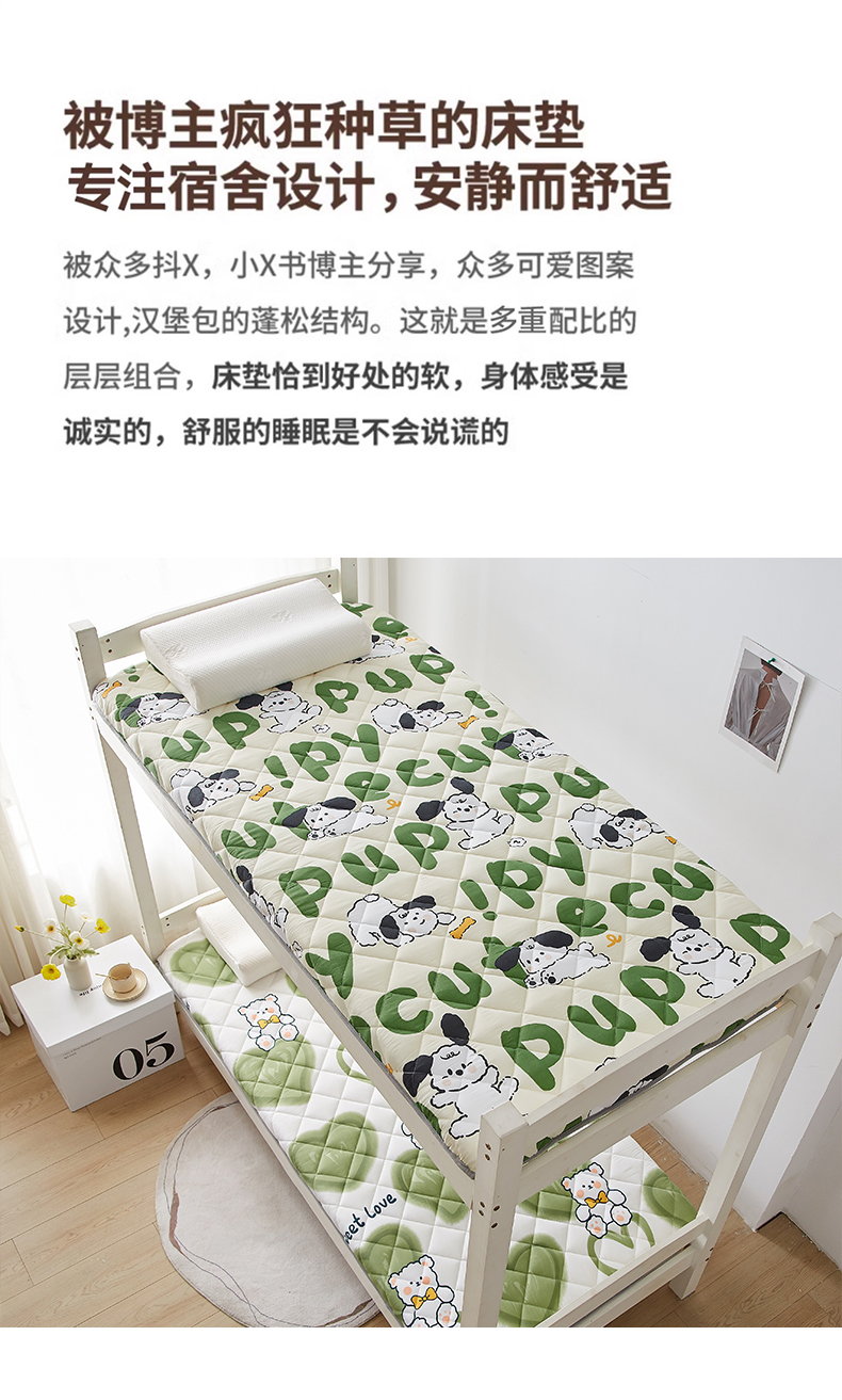 • 91家纺网 家纺一手货源 找家纺 暖季家纺 2025新款磨毛印花亲肤学生床垫 快乐萌犬