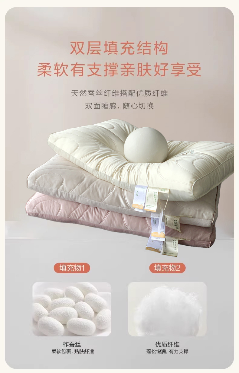 (总)方回家纺2025新款优雅水光蚕丝复合枕